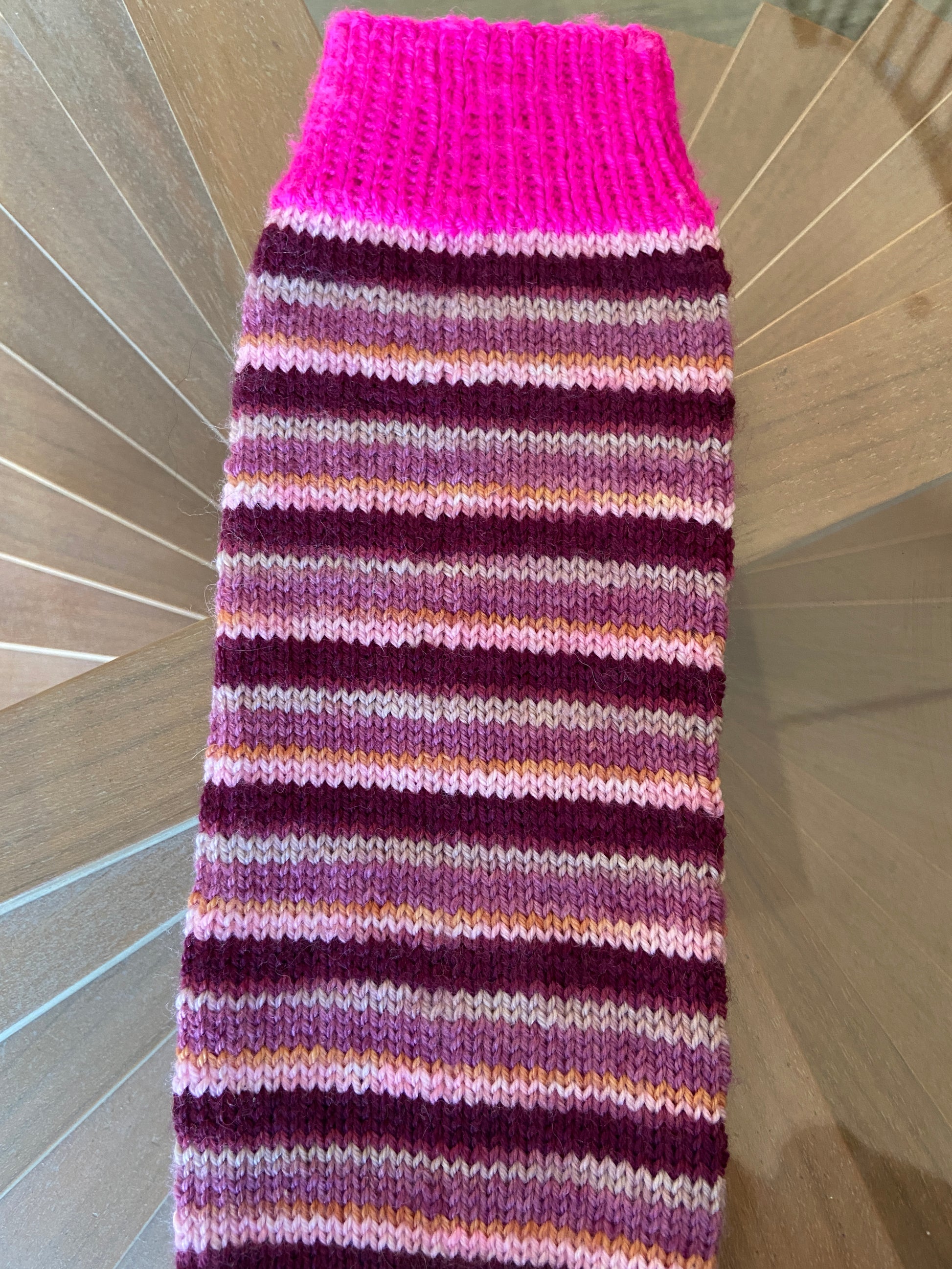 Each unit contains 80g of striping sock yarn - enough yarn to make 2 medium sized long socks. For optimal stripe, we recommend you use 2.5mm needles with typically 56 - 60 stitches. The yarn will yeild 30 pattern repeats, enough for 15 on each sock. The product also Includes 20g of a complementary colour for the Cuff-heel-toe detail should you want to snazzy the whole thing up. Total weight 100g.