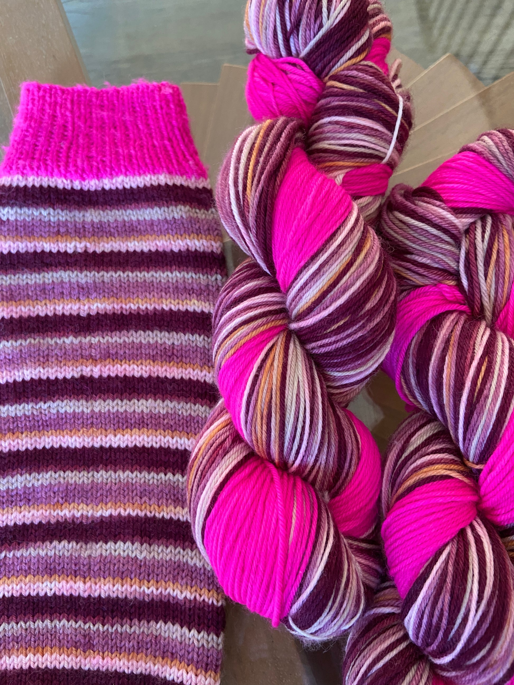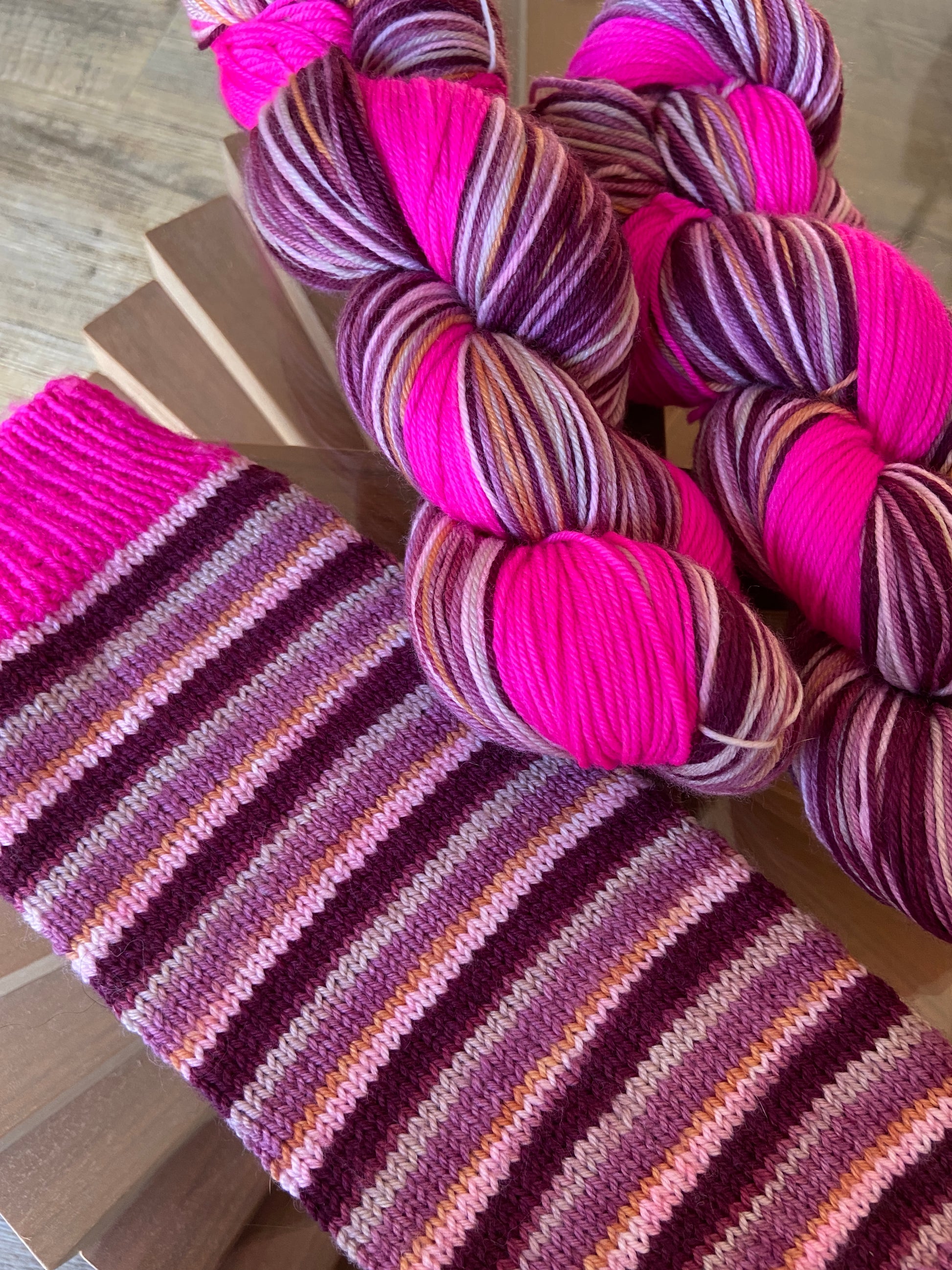 We are thrilled to be continuing the self striping sock yarn made with beautiful colourways that are a little bit retro and a whole lot of fun.
