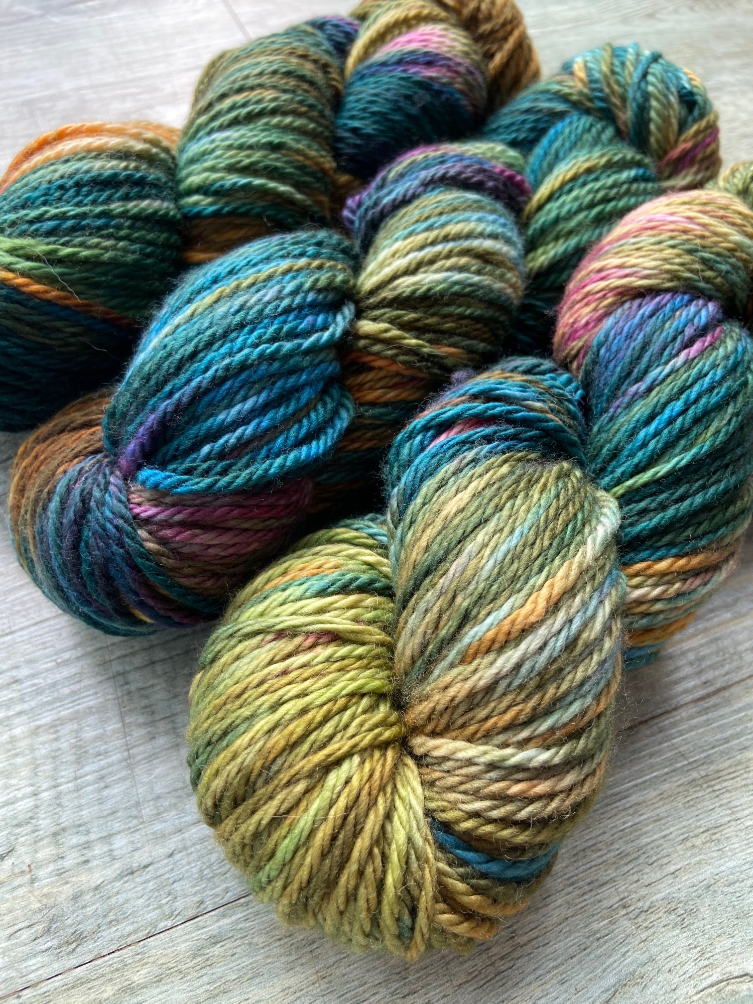 Yarn base is Mulesing Free certified super soft Australian Merino, ethically farmed and cruelty free. Small batch hand dyes may have some variety so if possible, we recommend working with two skeins at once, alternating yarn every row or two rows if you want to avoid colour pooling, particularly when shaping your garment. Always order enough yarn for your project from the same dyelot. If you need more than is available above, please get in touch and we can dye a unique batch for you of any quantity at no extra charge.