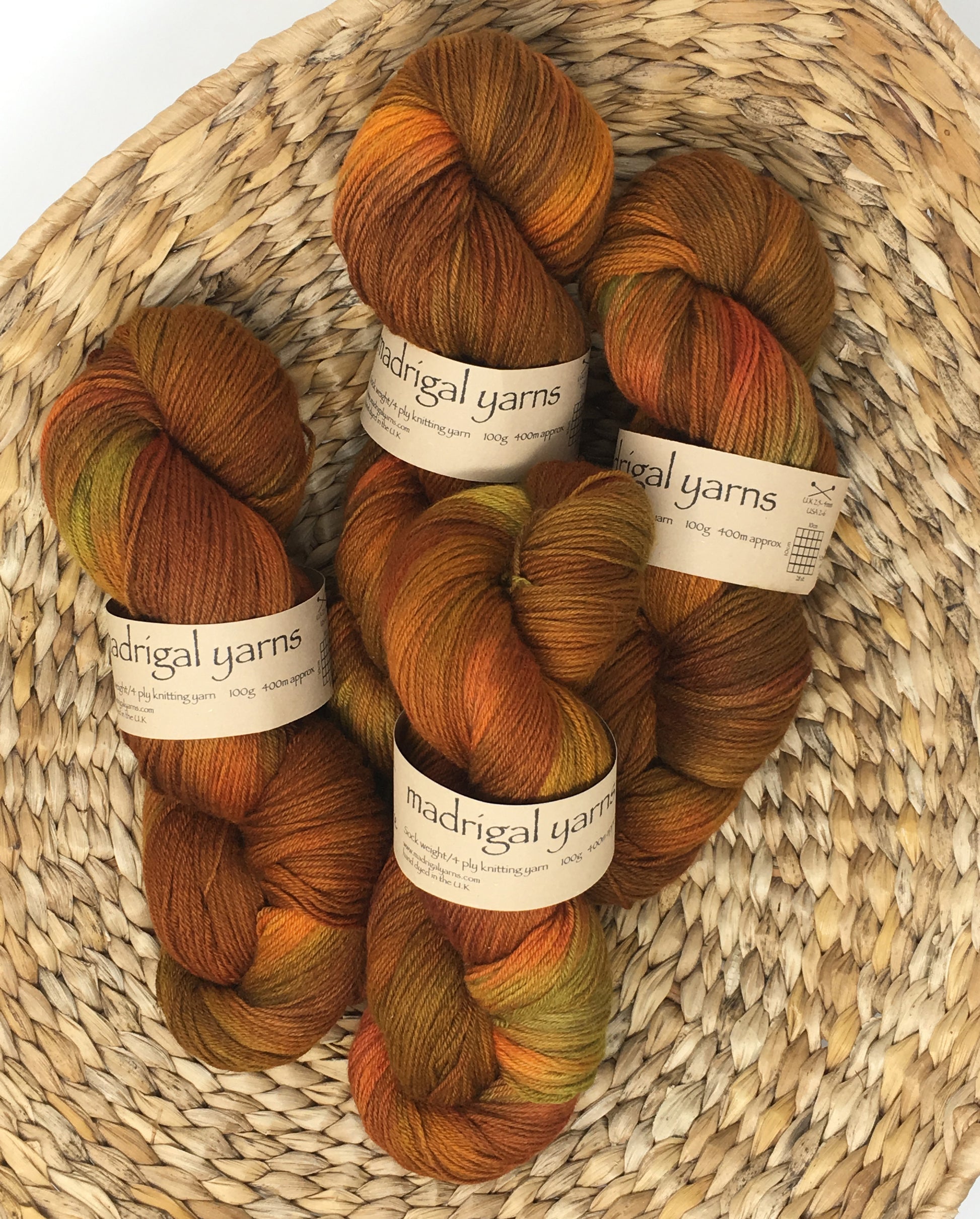 A rich autumn blend of olives and umbers with a hint of green and chestnut. A wonderfully chic colourway which looks beautiful knitted for your next project..