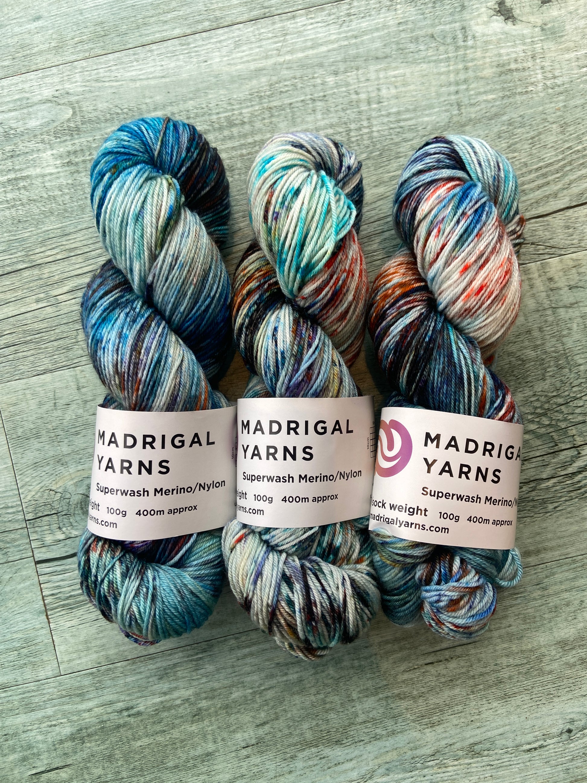 Speckled yarn creates a shimmering vibrant fabric, full of unexpected pops and unpredictable colour pooling. This is perfect for shawls, socks and even Jumpers if you’re brave enough!