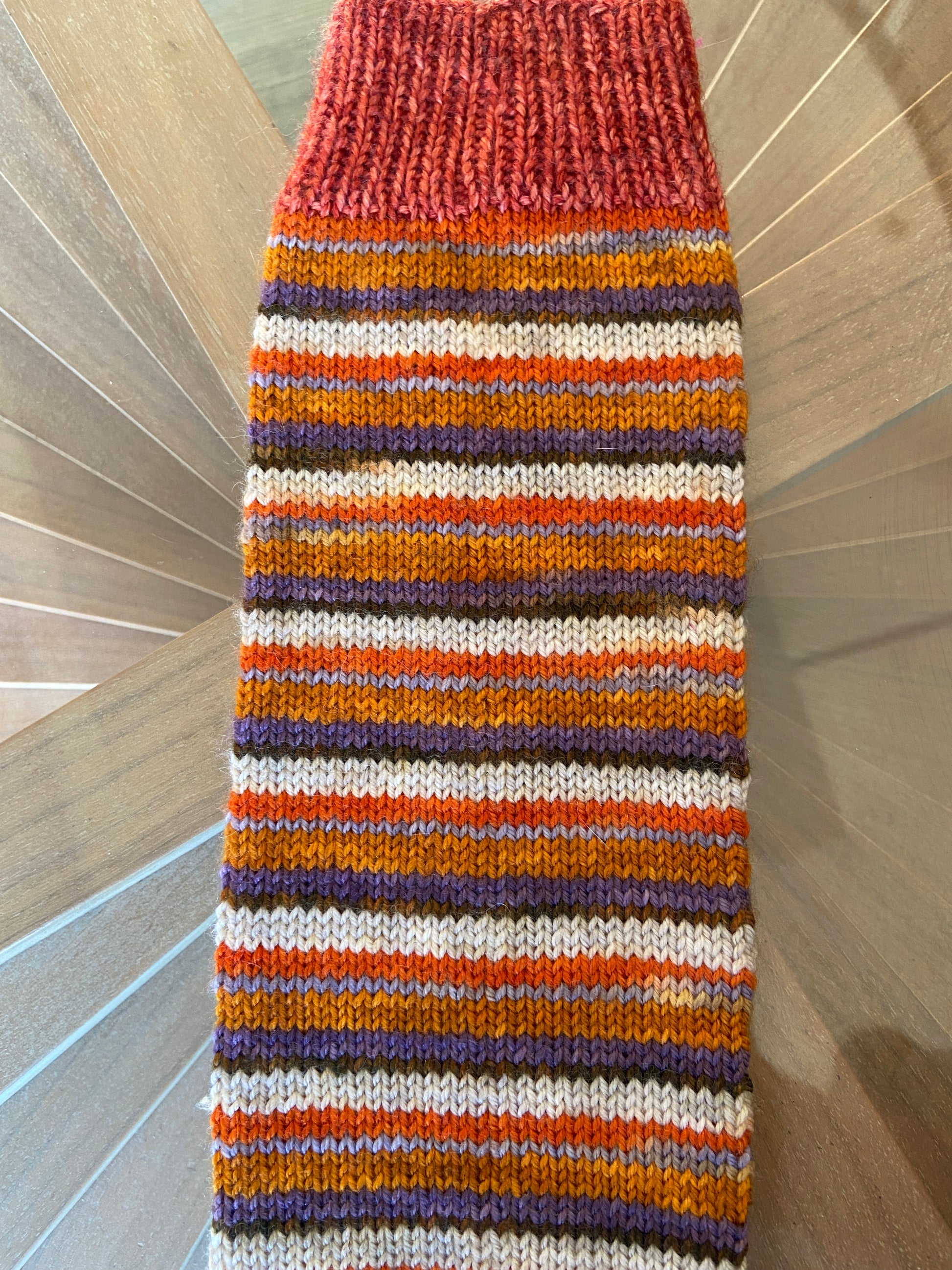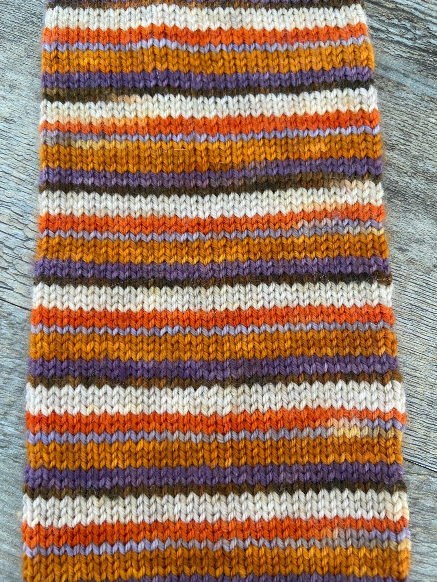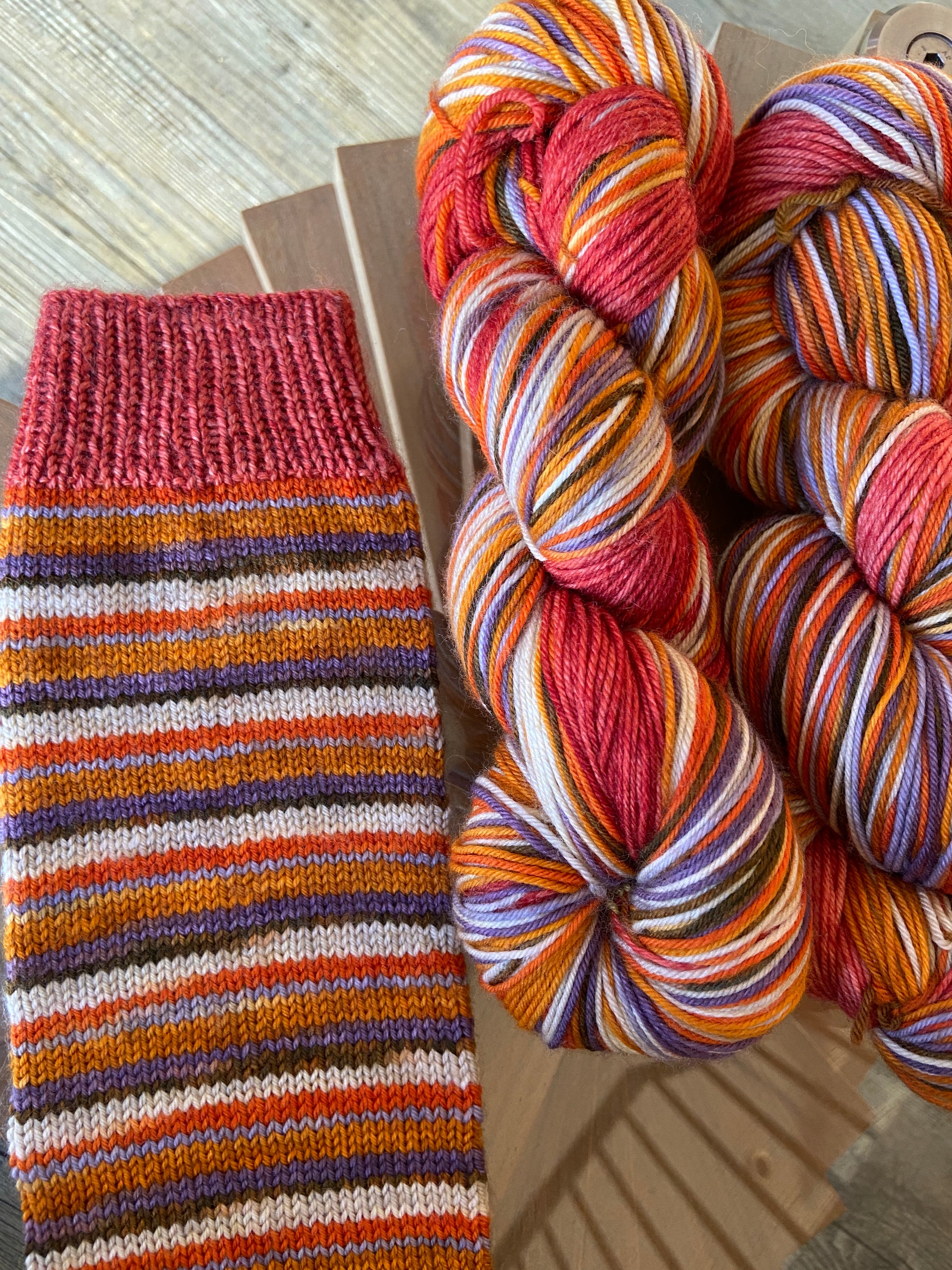 Each unit contains enough yarn to make 2 medium sized long socks. For optimal stripe, we recommend you use 2.5mm DPN’sand a maximum of 60 stitches. The yarn will yeild 30 pattern repeats, enough for 15 on each sock. Included is a contrasting yet complementary colour for the Cuff-heel-toe detail should you want to snazzy the whole thing up.