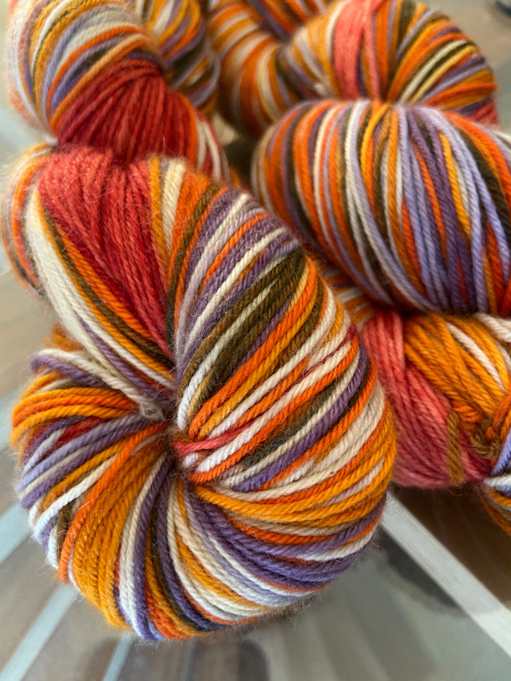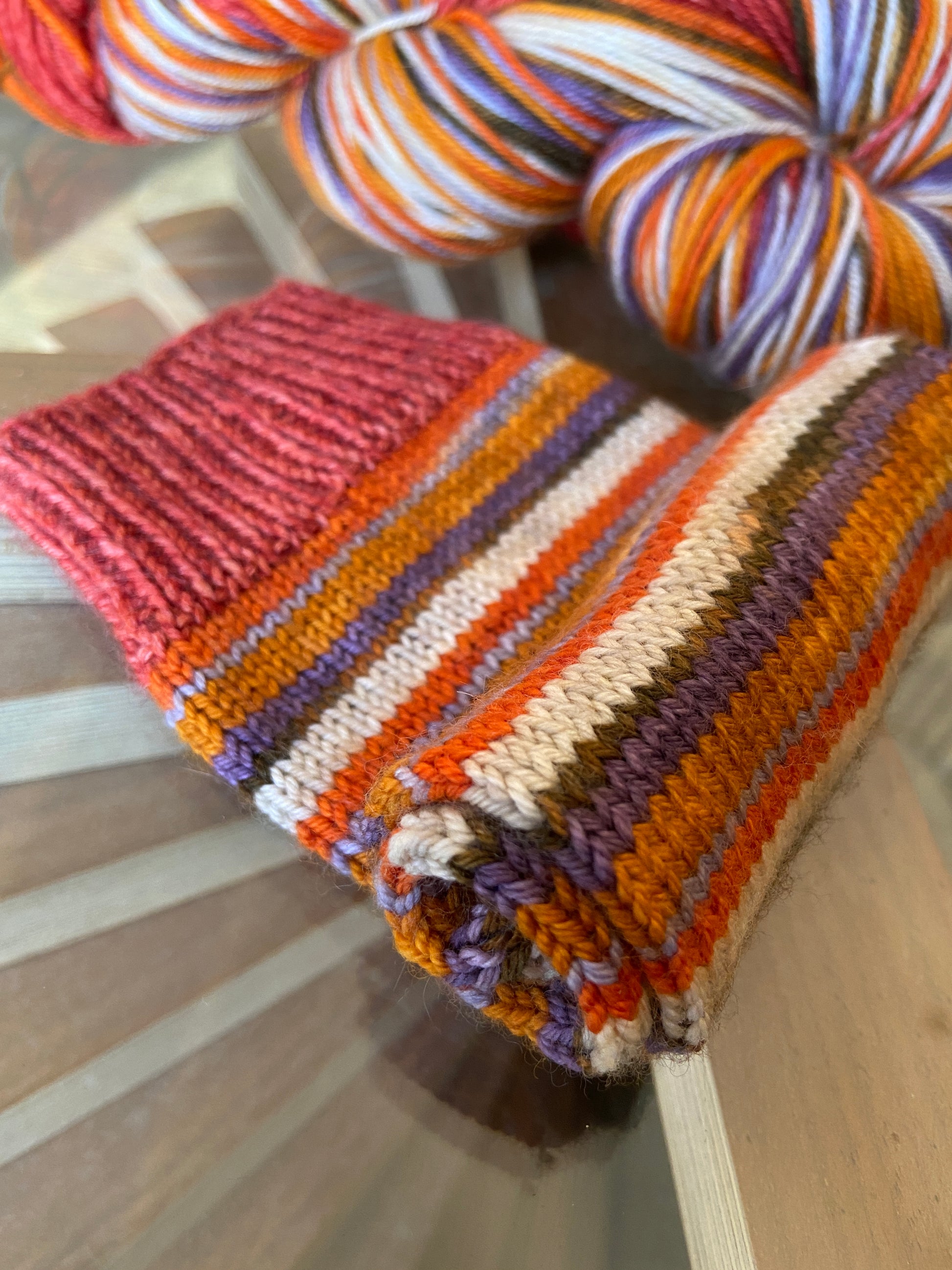 We are thrilled to be introducing self striping sock yarn made with new beautiful colourways that are a little bit retro and a whole lot of fun.