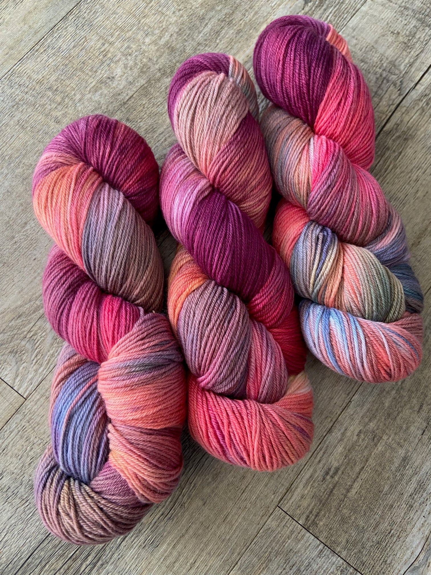 Yarn base is Mulesing Free certified super soft Australian Merino, ethically farmed and cruelty free. Small batch hand dyes may have some variety so if possible, we recommend working with two skeins at once, alternating yarn every row or two rows if you want to avoid colour pooling, particularly when shaping your garment. Always order enough yarn for your project from the same dyelot. If you need more than is available above, please get in touch and we can dye a unique batch for you of any quantity at no extra charge.