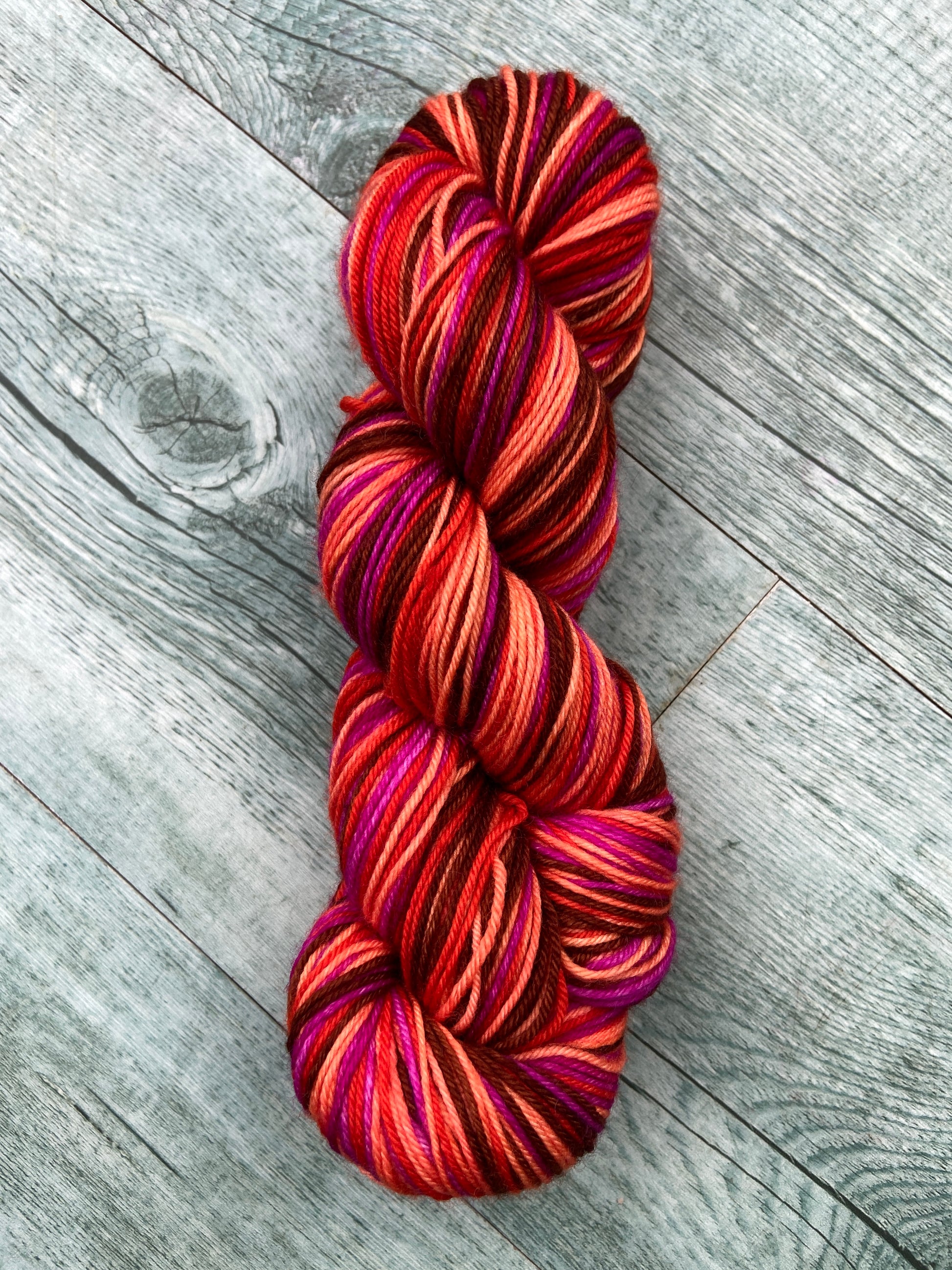 This is a wonderful new range of self striping sock in a chunky stripe but with a dainty colour sensibility.