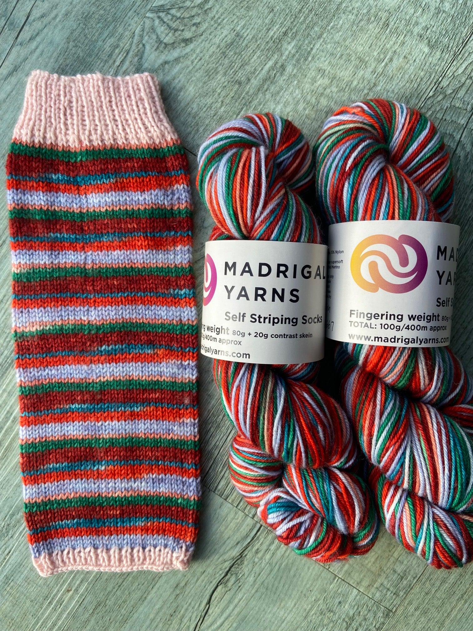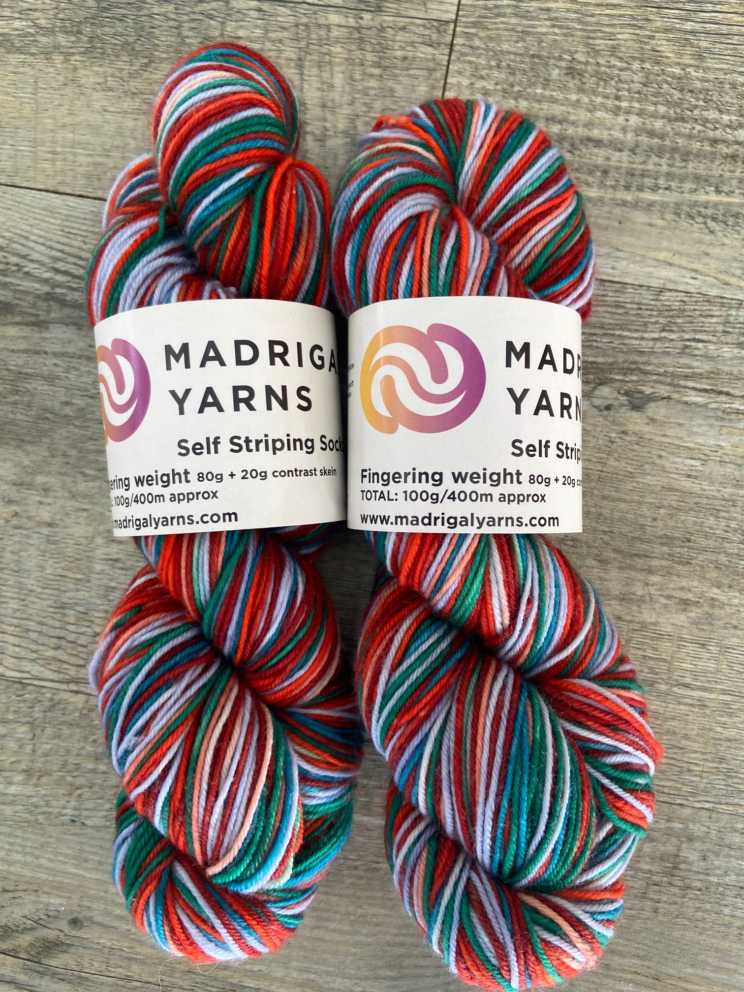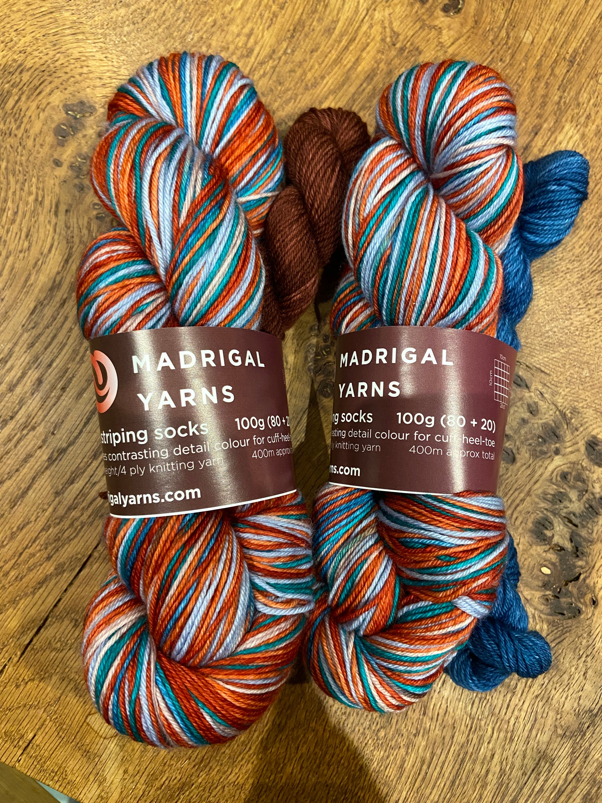 Each unit contains 80g of striping sock yarn - enough yarn to make 2 medium sized long socks. For optimal stripe, we recommend you use 2.5mm needles with typically 56 - 60 stitches. The yarn will yield 30 pattern repeats, enough for 16 on each sock. The product also Includes 20g of a complementary colour for the Cuff-heel-toe detail should you want to snazzy the whole thing up. Total weight 100g.