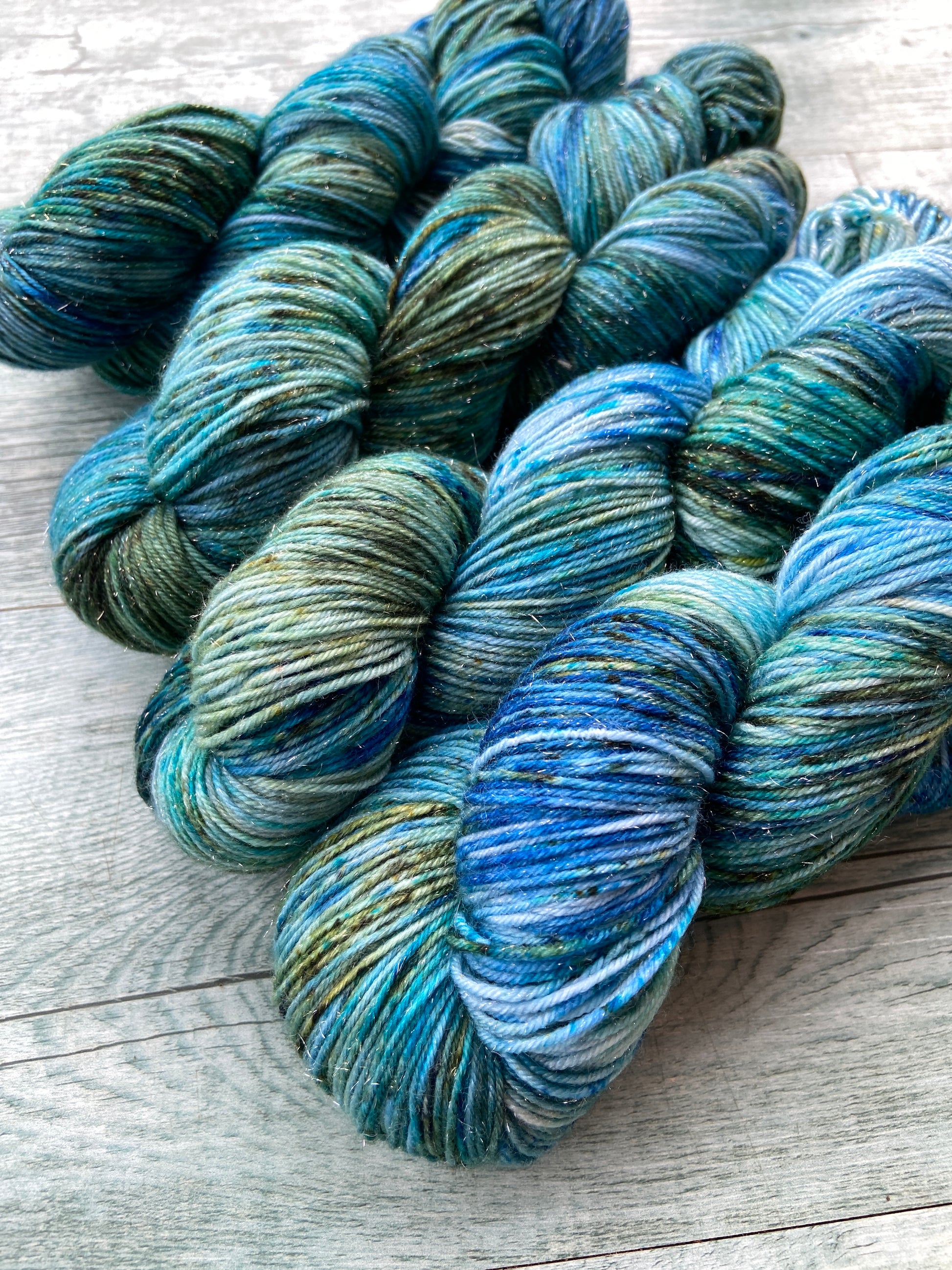 100g 75% Superwash Merino 15% Nylon 10% Stellina sparkle Dyelot 0812004 QTY IN STOCK :4
