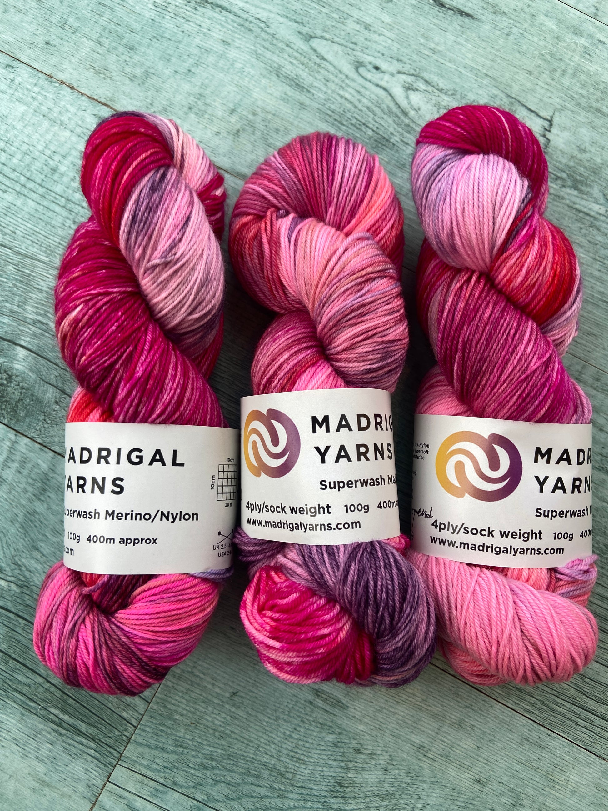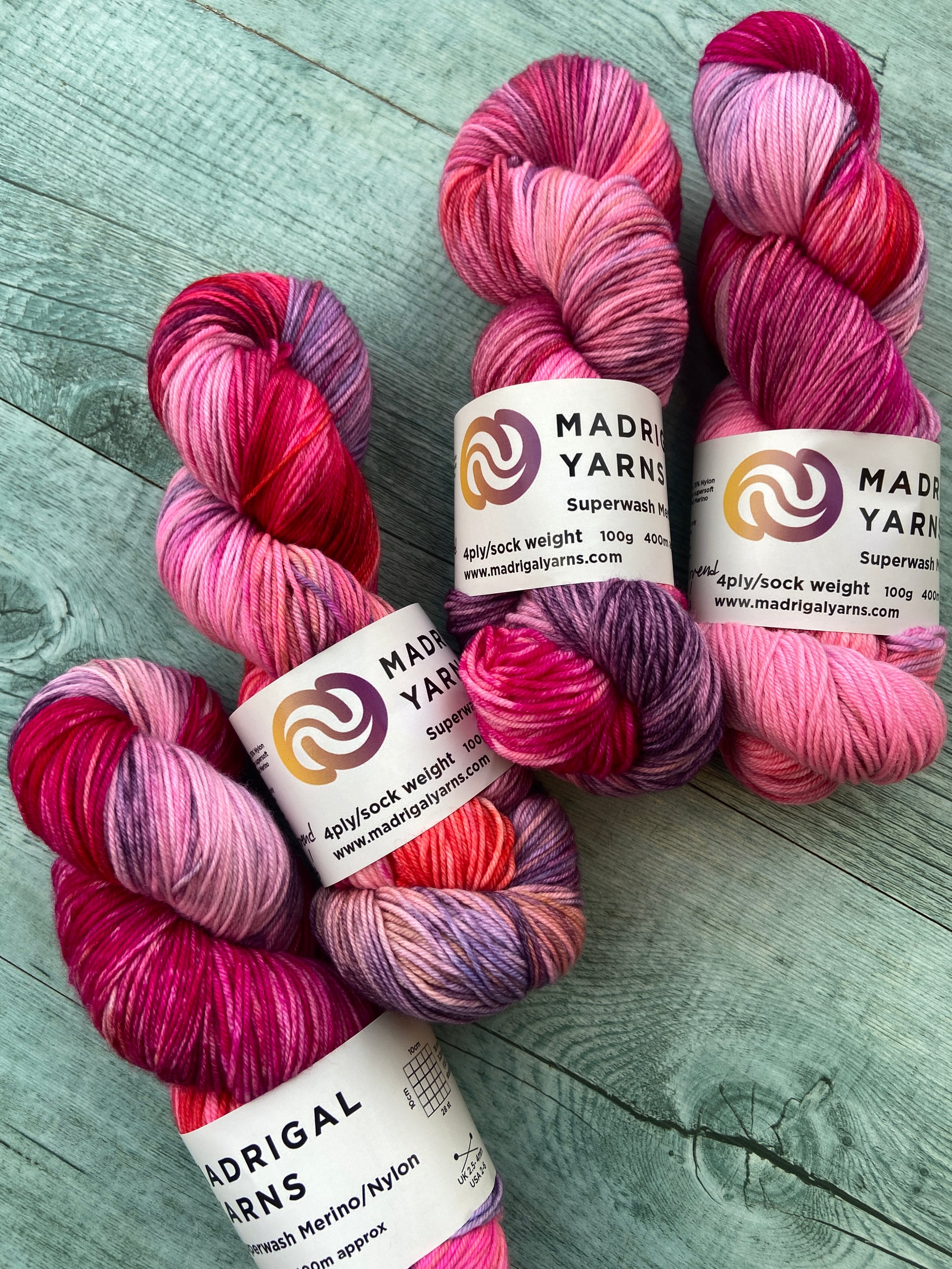 October Carnival Themed yarn club - this is colour 1 which is a beautiful mix of Bright pinks.
