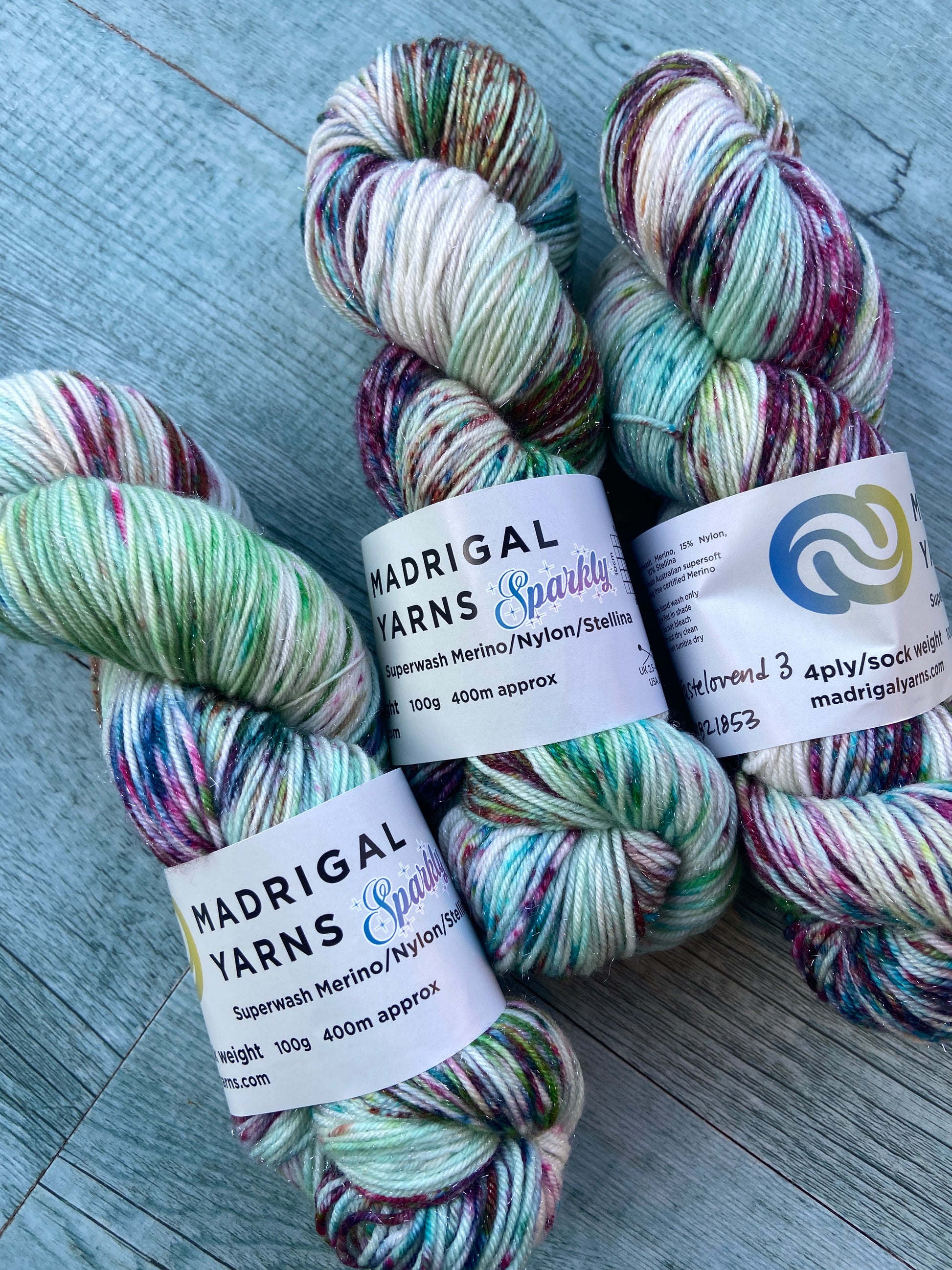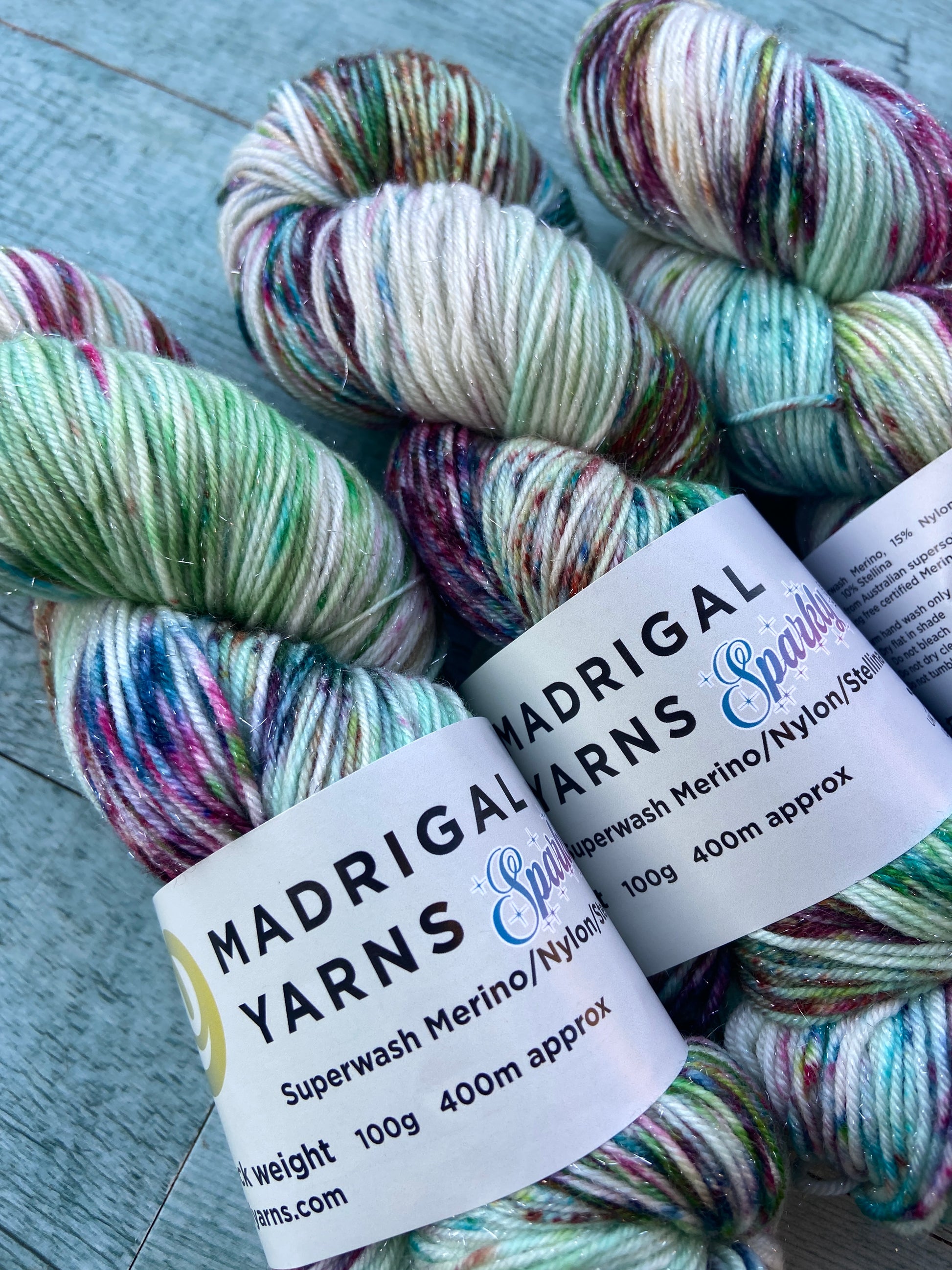 100g 4ply/sock 75% Superwash Merino 15% Nylon 10% STELLINA