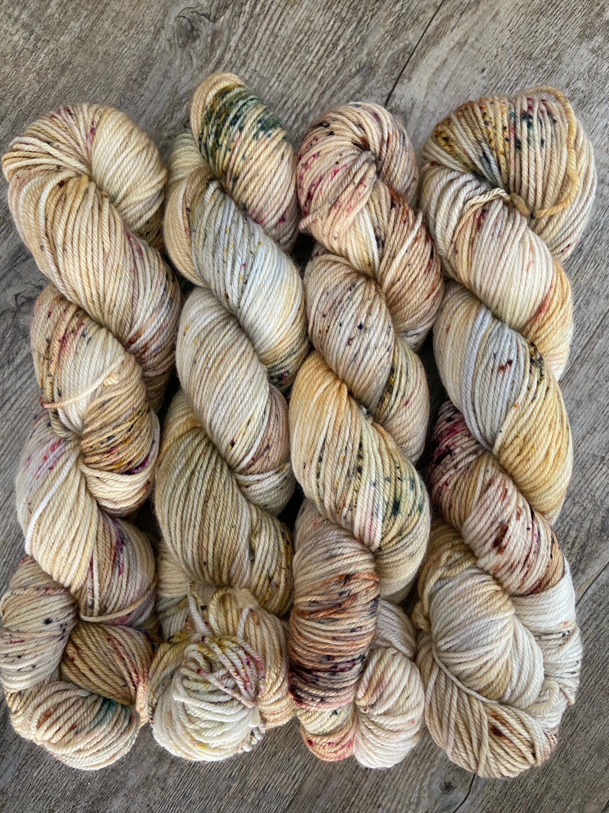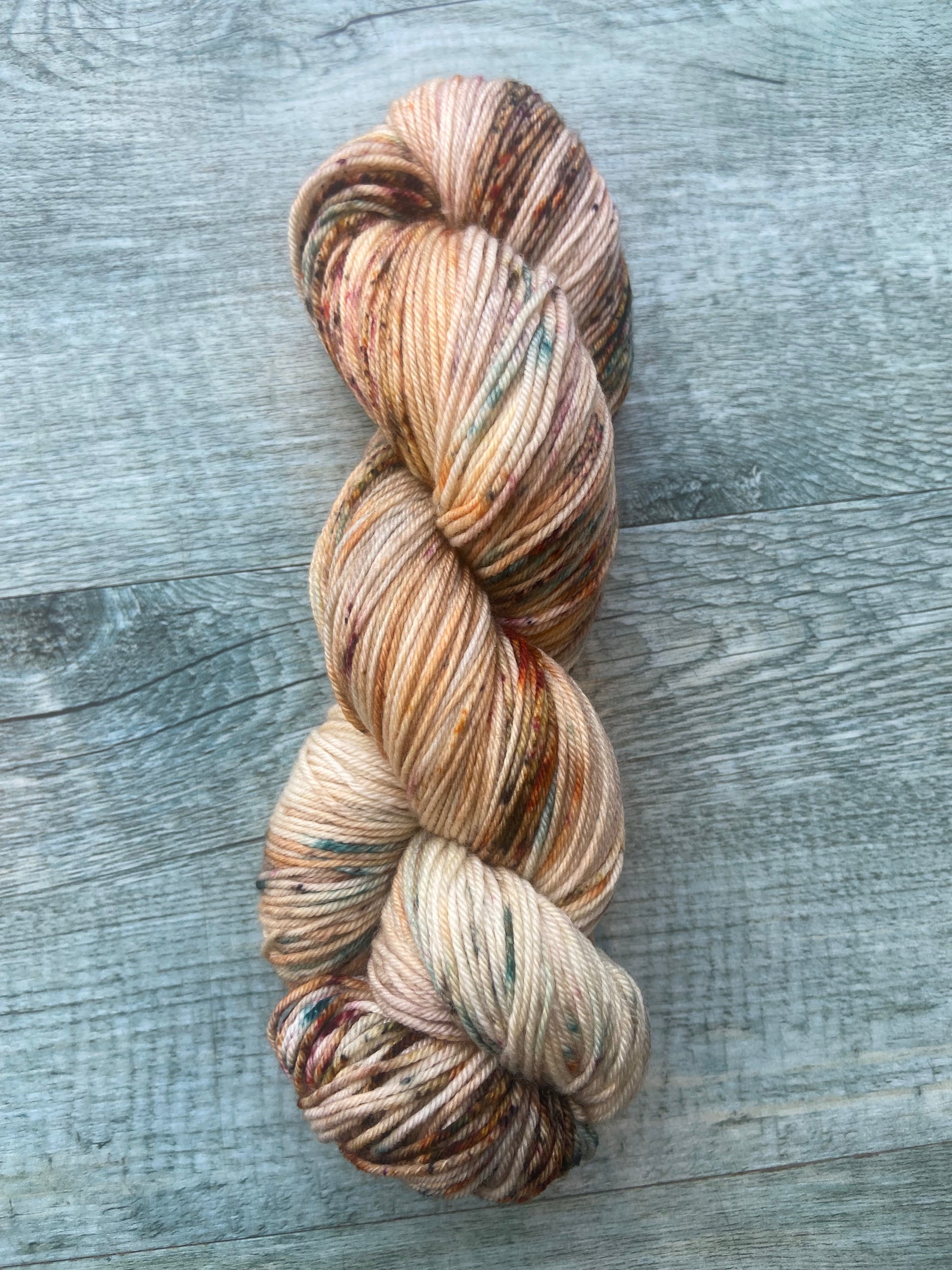 Produced in super soft, New Merino, this yarn is delightfully soft to work with and produces a beautiful speckled fabric with the predominant colour of pale sandy tones with brown pops..