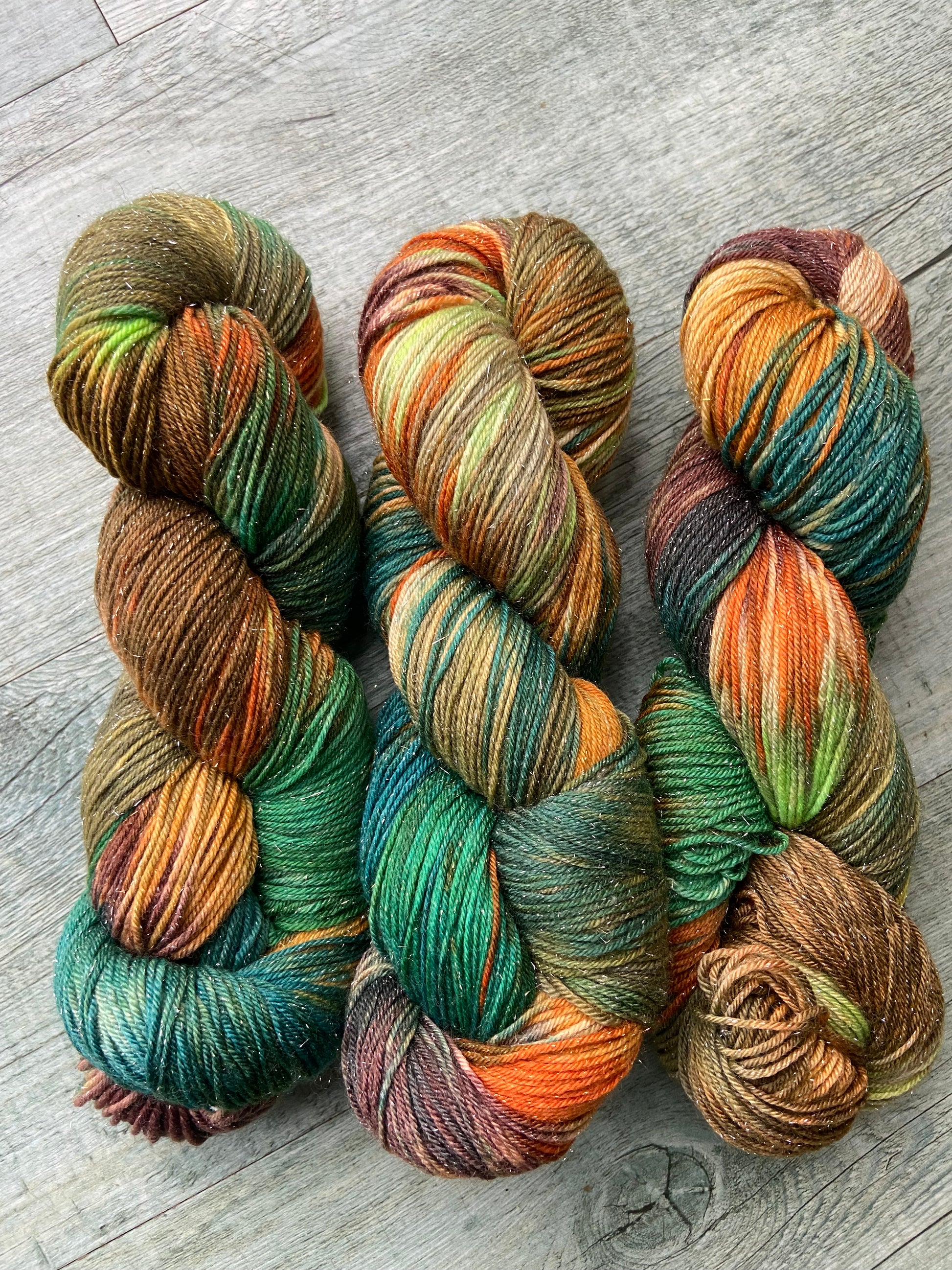 Produced in super soft luxury merino with a but of Nylon and stellia sparkle, this yarn is delightful to work with and produces a beautiful mottled soft multicoloured fabric.