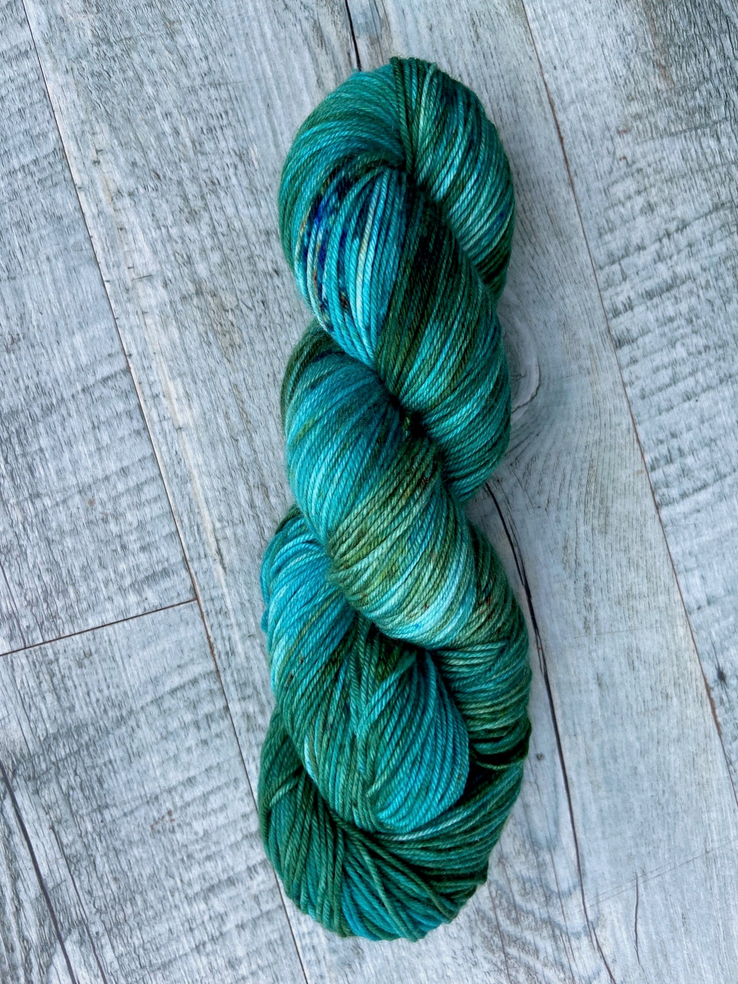 Beautifully Speckled Teal green coloured yarn in 4ply/sock weight with a hint of nylon for structure