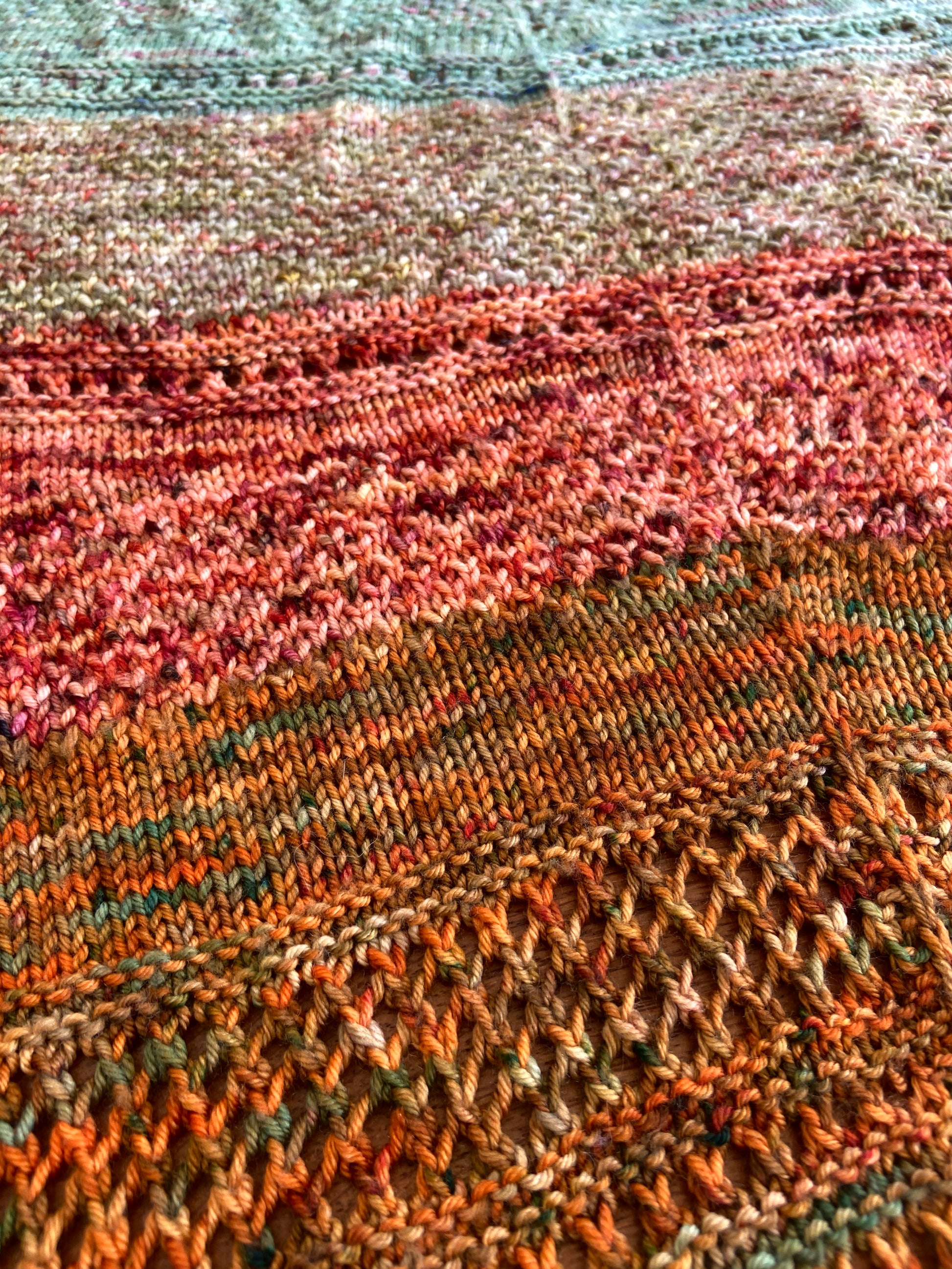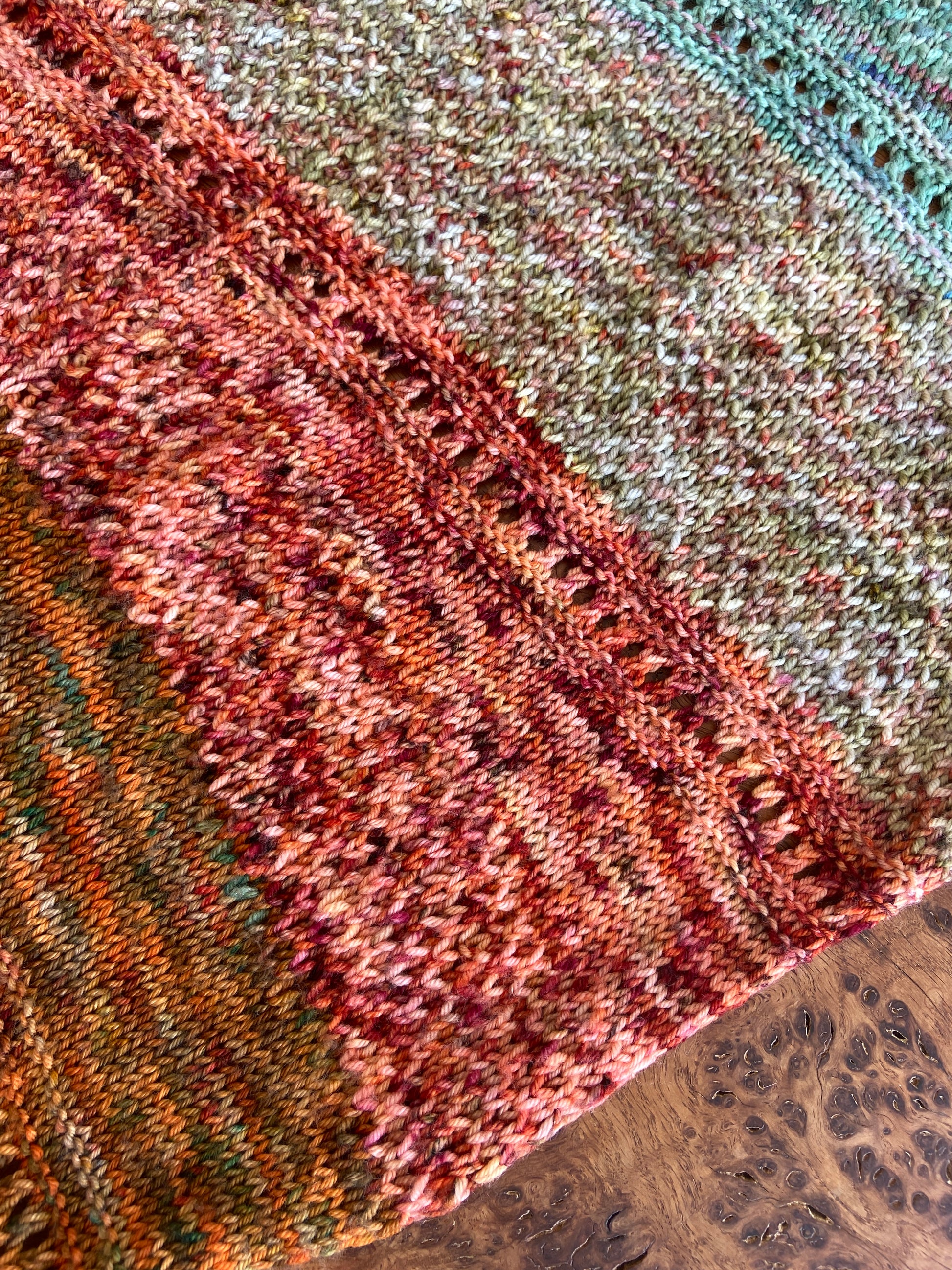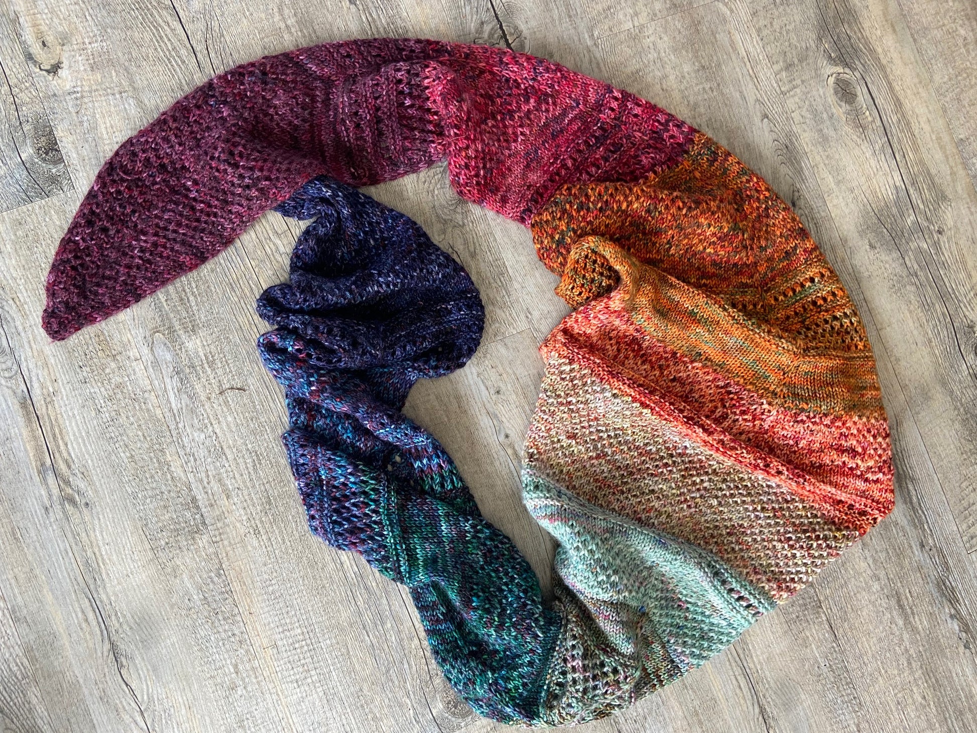This is also available as a ten fade colour pattern and yarn kit in both the Vacationer and the D’orsay shawls. Visit these items in the store and you will see the variant there!