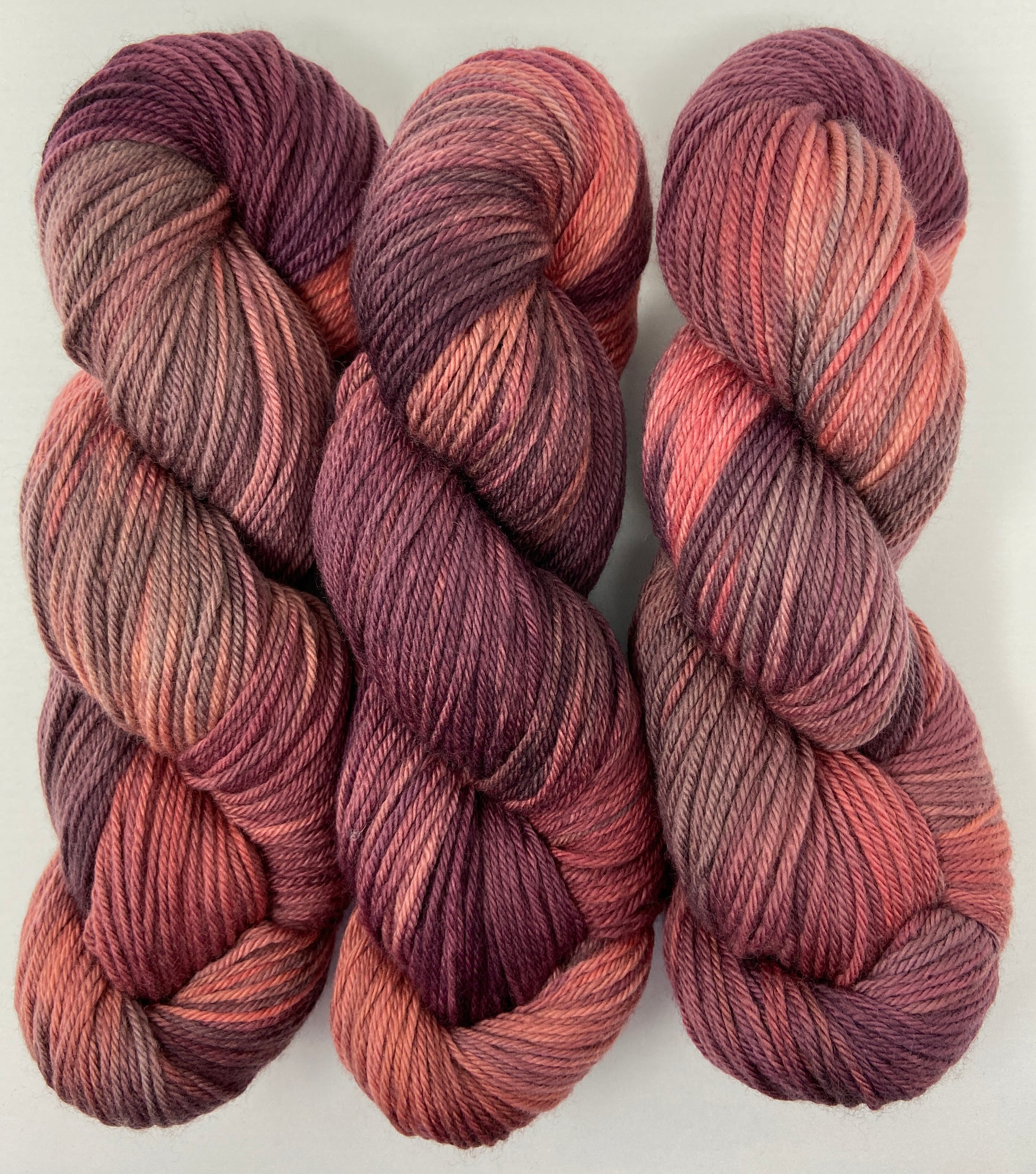 Yarn base is Mulesing Free certified super soft Australian Merino, ethically farmed and cruelty free. Each Skein is 100g in weight; yardage varies for the gauge as shown above. Small batch hand dyes may have some variety so if possible, we recommend working with two skeins at once, alternating yarn every row or two rows if you want to avoid colour pooling, particularly when shaping your garment. Always order enough yarn for your project from the same dyelot. If you need more than is available above, please get in touch and we can dye a unique batch for you of any quantity at no extra charge.