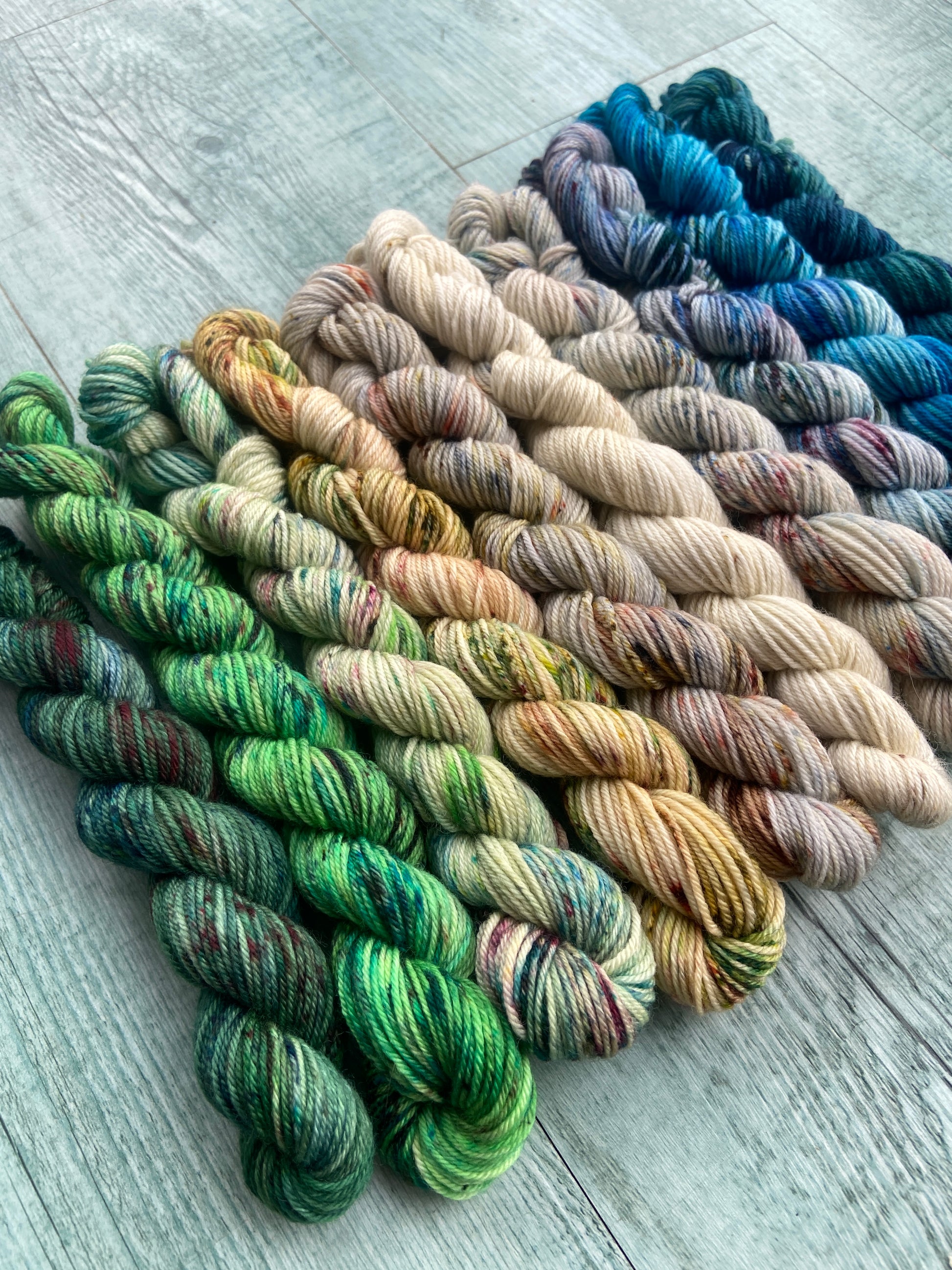 This is a pattern and yarn kit, each of the colours included are lovingly selected for this shawl and only found here. The colours are named after fancy holiday themes from my recent trip to the Canary Islands.
