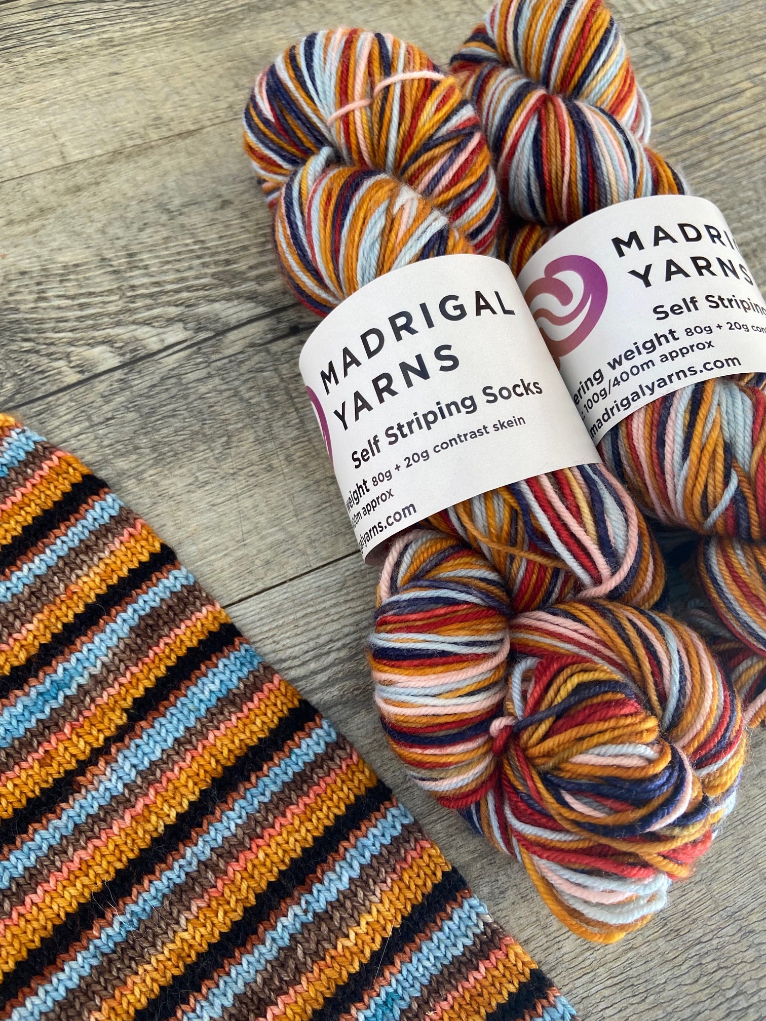 We are thrilled to be continuing the self striping sock yarn made with beautiful colourways that are a little bit retro and a whole lot of fun.