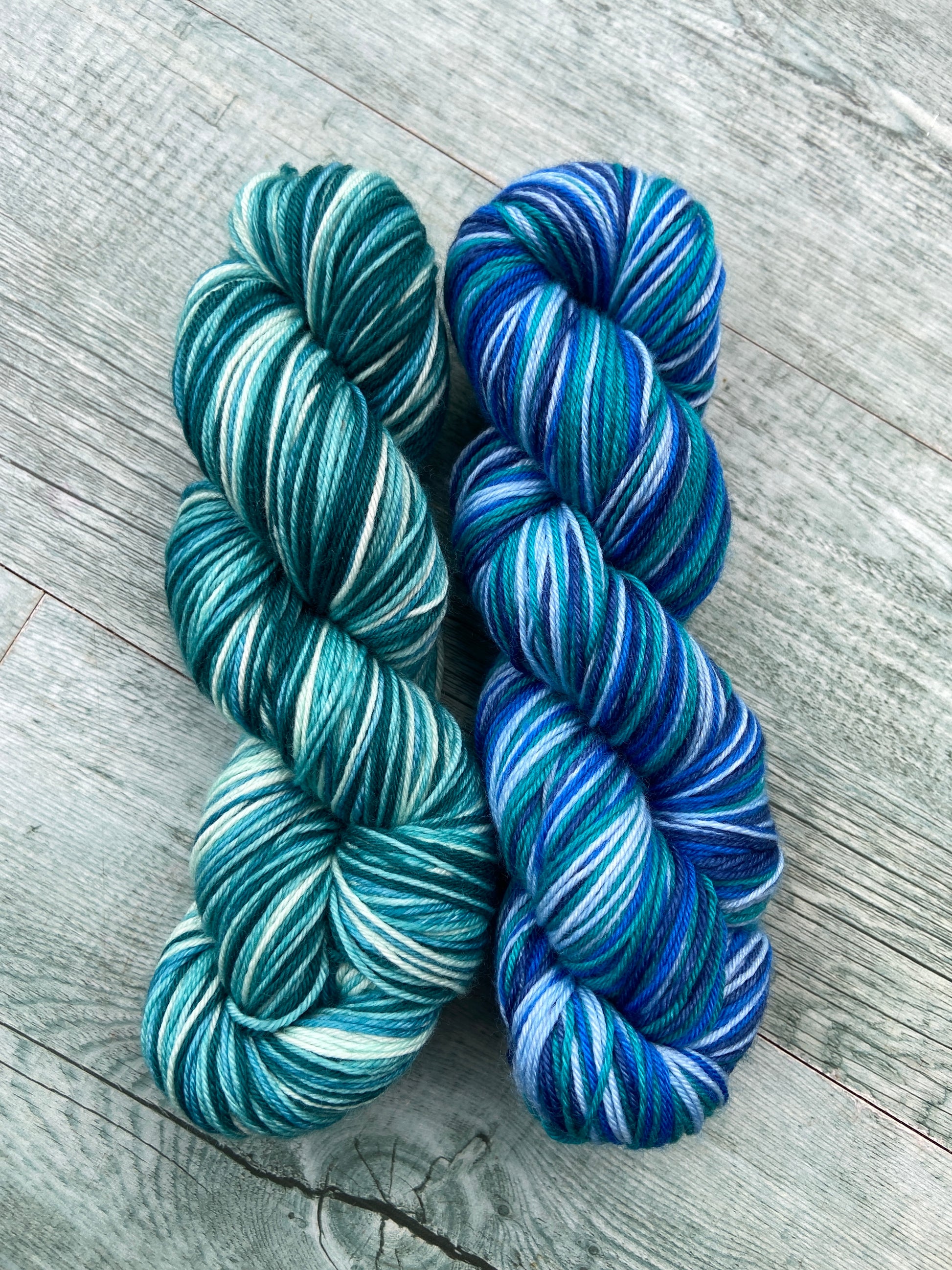 The yarn is super soft 85% Superwash Merino with 15% Nylon for strength and durability. Each colourway comes with two option of colour for the cuff, and in each colour it comes as plain or sparkles.