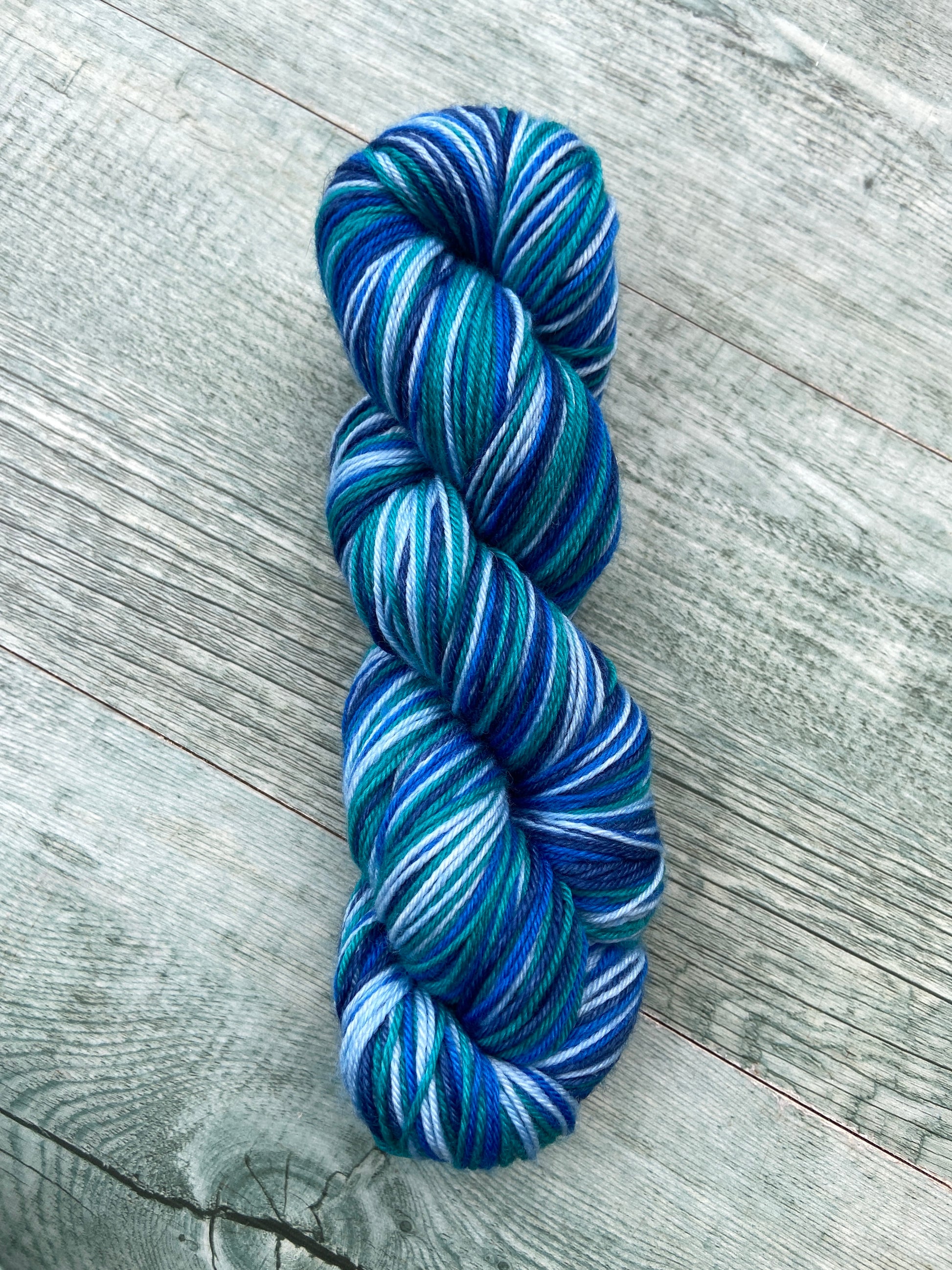 Please note that this kit is 80g of self striping sock yarn and 20g of white for the cuff heel toe details. Other variations of detail colour available soon.