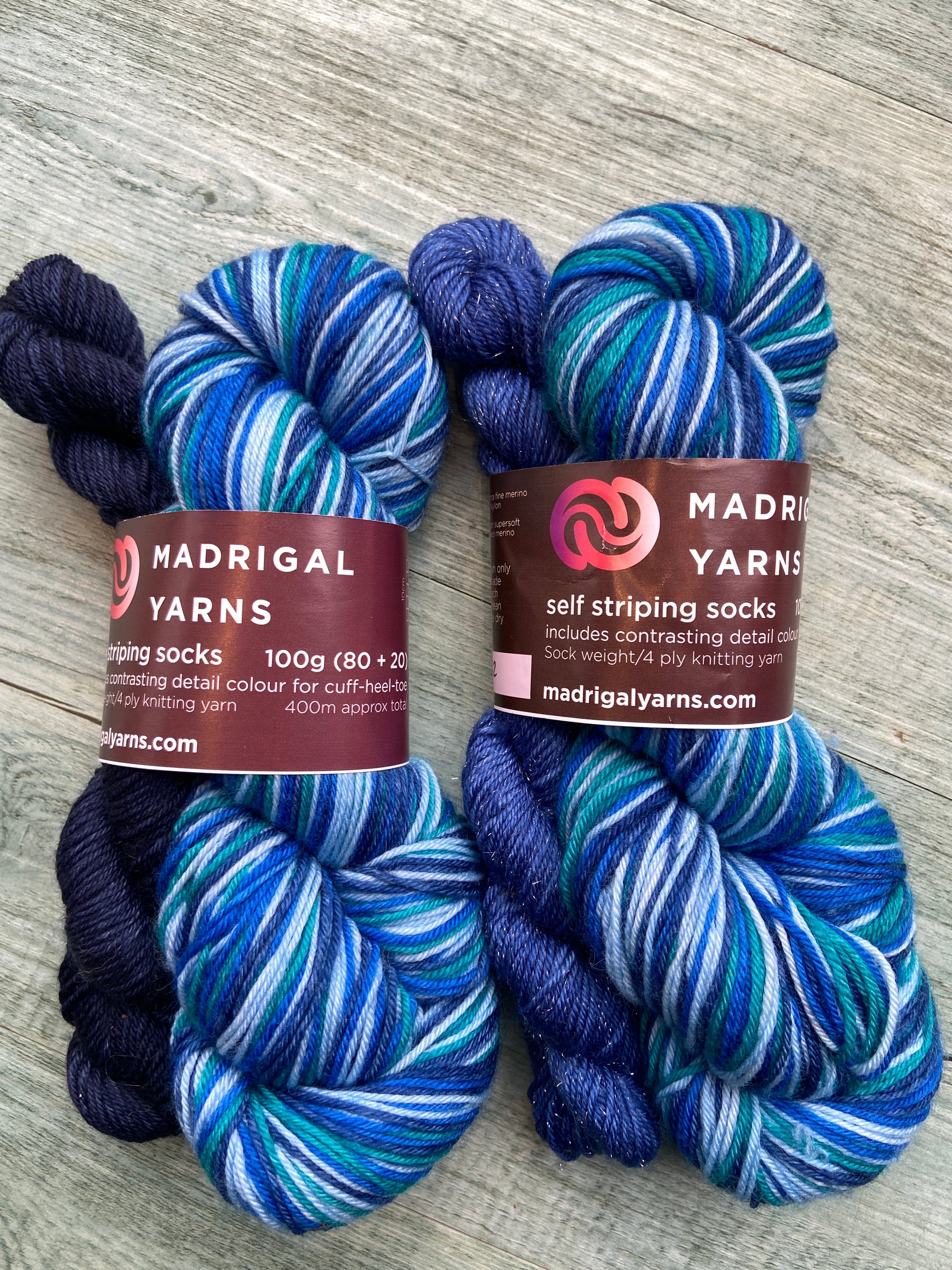The yarn is super soft 85% Superwash Merino with 15% Nylon for strength and durability. Each colourway comes with two option of colour for the cuff, and in each colour it comes as plain or sparkles.