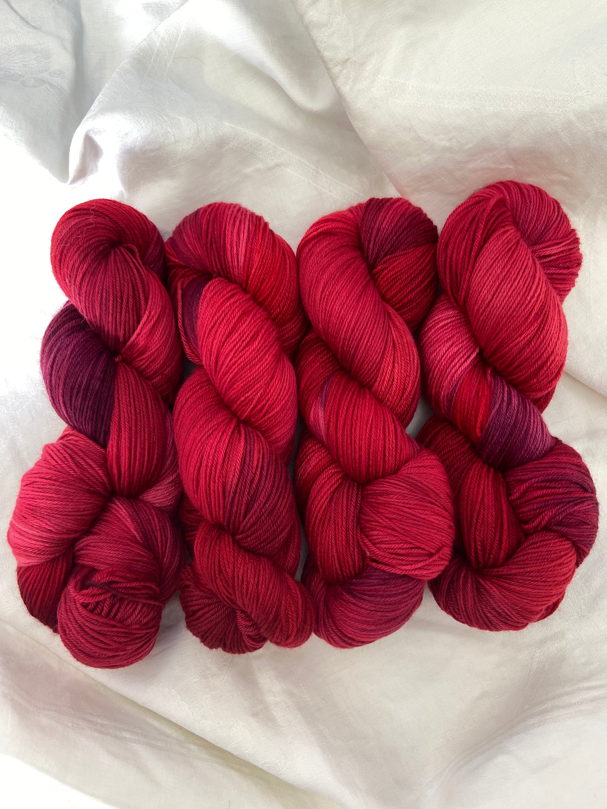 Yarn base is Mulesing Free certified super soft Australian Merino, ethically farmed and cruelty free. Small batch hand dyes may have some variety so if possible, we recommend working with two skeins at once, alternating yarn every row or two rows if you want to avoid colour pooling, particularly when shaping your garment. Always order enough yarn for your project from the same dyelot. If you need more than is available above, please get in touch and we can dye a unique batch for you of any quantity at no extra charge.