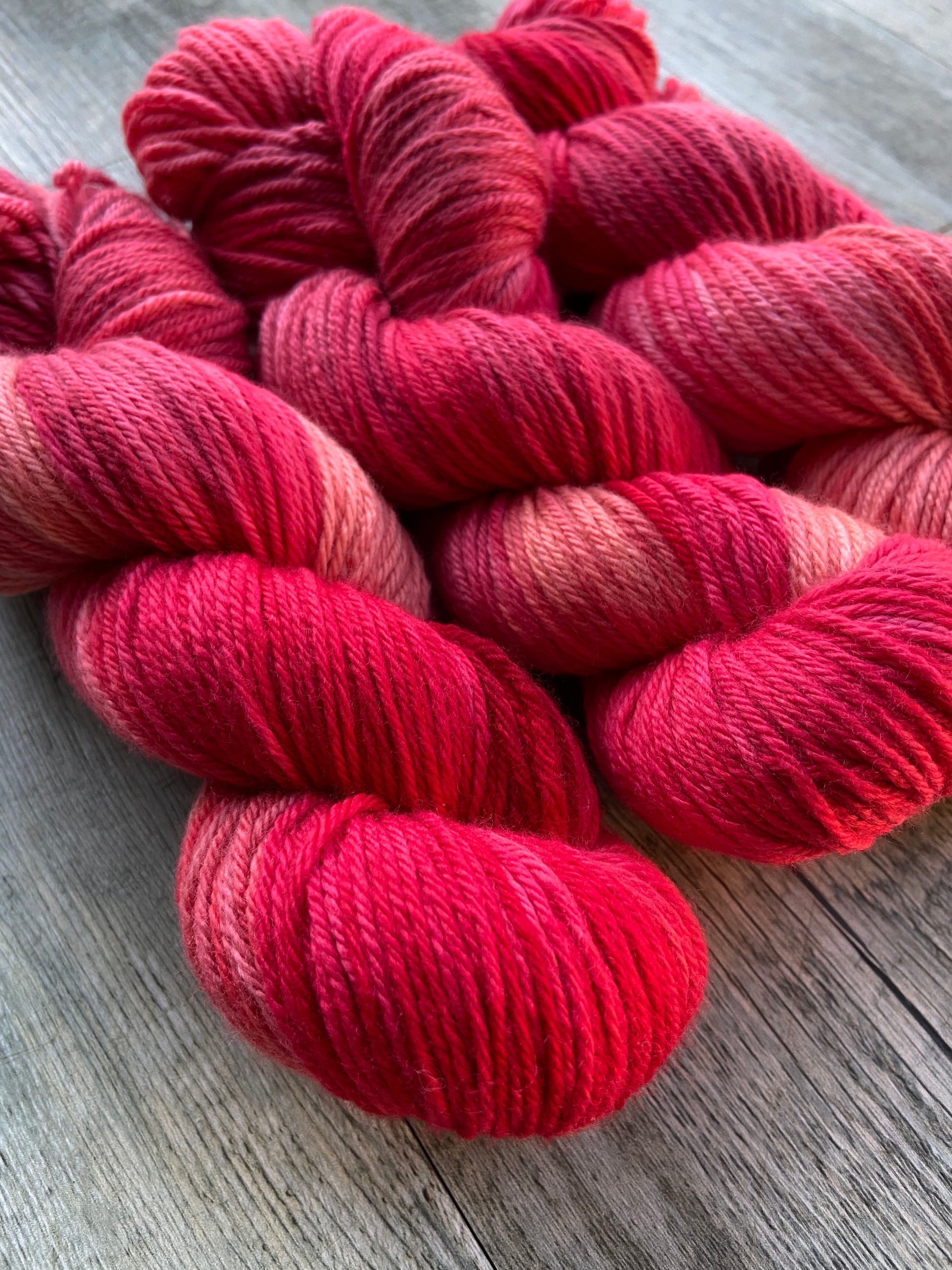 Like a swish of bright salmon sparkling in the sunlight of a mountain stream. This lovely yarn is dynamic and wonderfully soft in its hues. Perfect for any accessory or garment.
