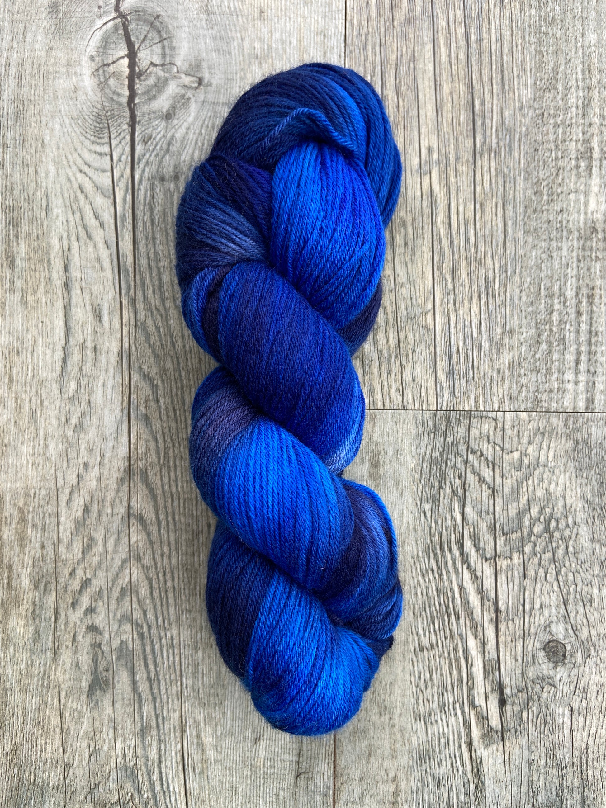Produced in super soft, New Merino, this yarn is delightful to work with and produces a beautiful mottled fabric with the predominant colour of blue.