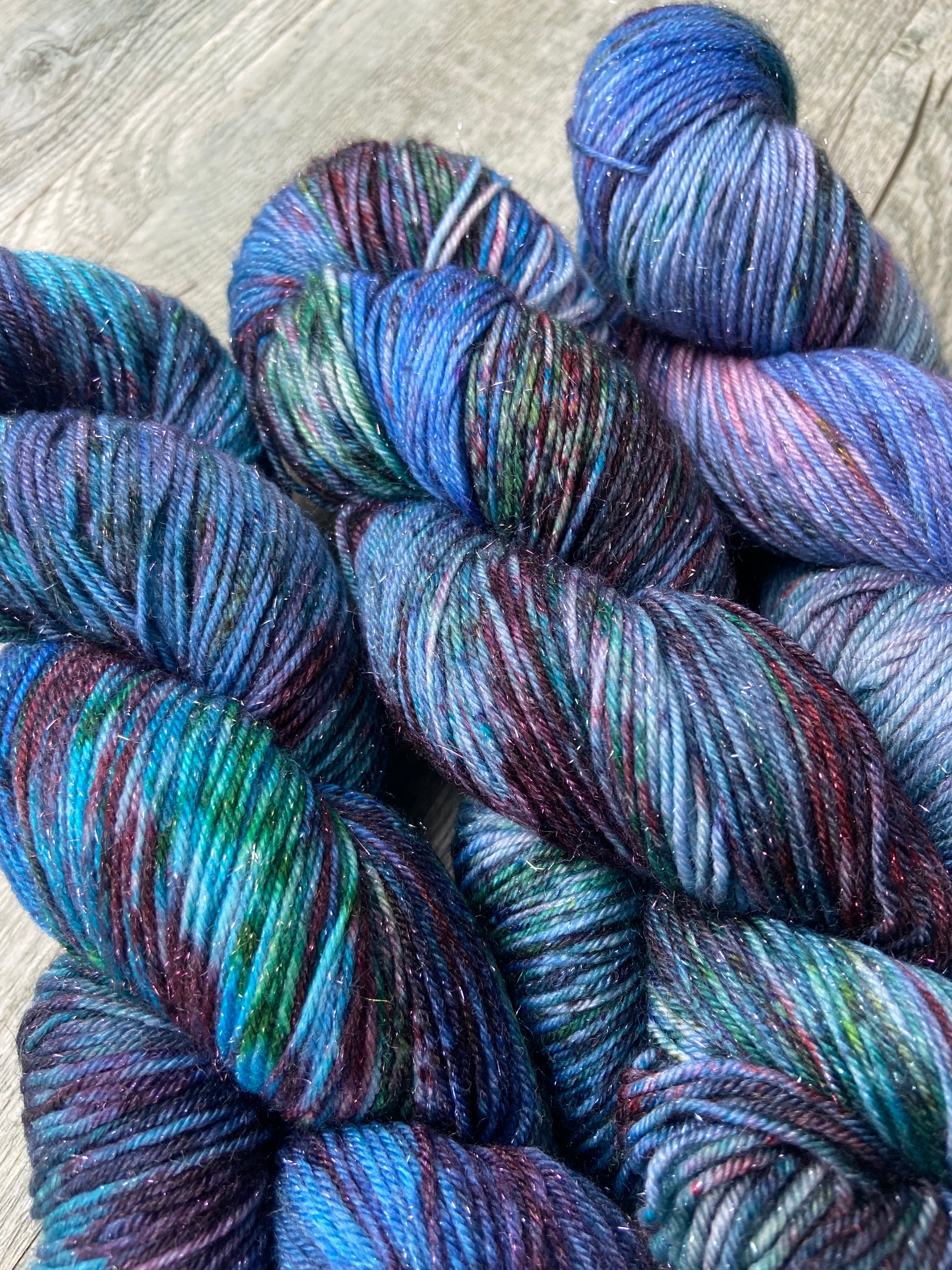 Produced in super soft luxury merino with a but of Nylon and stellia sparkle, this yarn is delightful to work with and produces a beautiful mottled soft multicoloured fabric.
