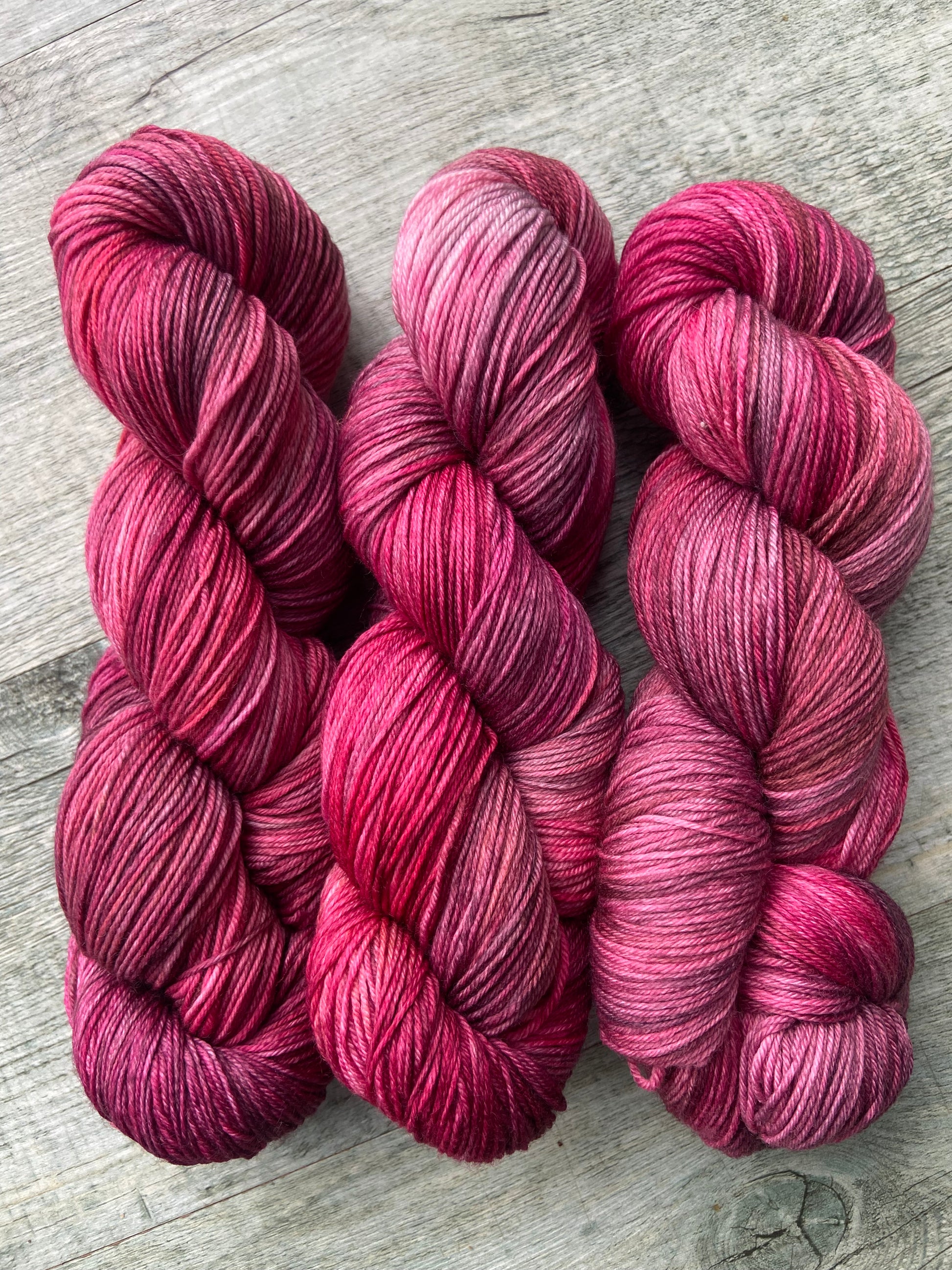 Yarn base is Mulesing Free certified super soft Australian Merino, ethically farmed and cruelty free. Small batch hand dyes may have some variety so if possible, we recommend working with two skeins at once, alternating yarn every row or two rows if you want to avoid colour pooling, particularly when shaping your garment. Always order enough yarn for your project from the same dyelot. If you need more than is available above, please get in touch and we can dye a unique batch for you of any quantity at no extra charge.