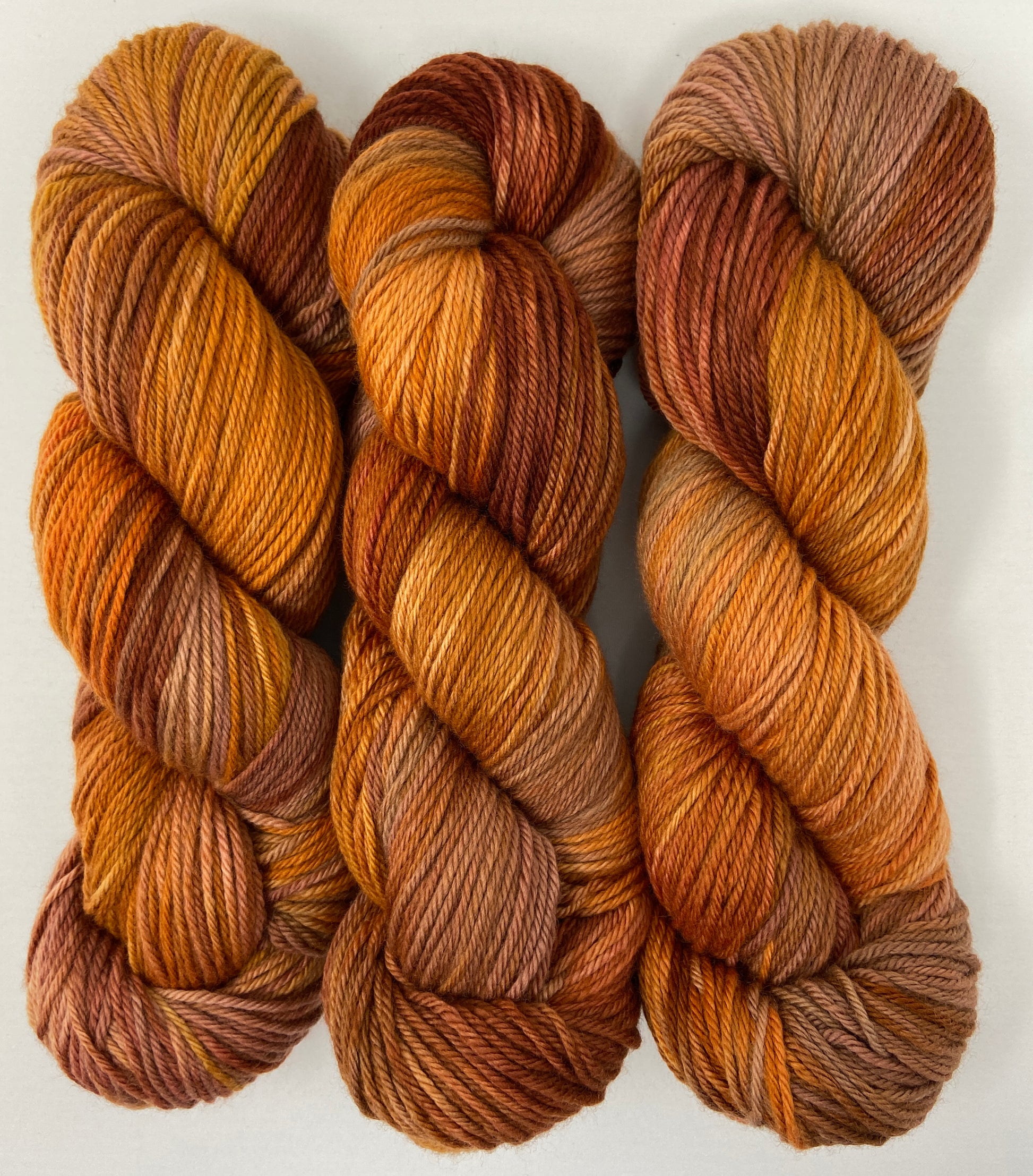 Yarn base is Mulesing Free certified super soft Australian Merino, ethically farmed and cruelty free. Each Skein is 100g in weight; yardage varies for the gauge as shown above. Small batch hand dyes may have some variety so if possible, we recommend working with two skeins at once, alternating yarn every row or two rows if you want to avoid colour pooling, particularly when shaping your garment. Always order enough yarn for your project from the same dyelot. If you need more than is available above, please get in touch and we can dye a unique batch for you of any quantity at no extra charge.
