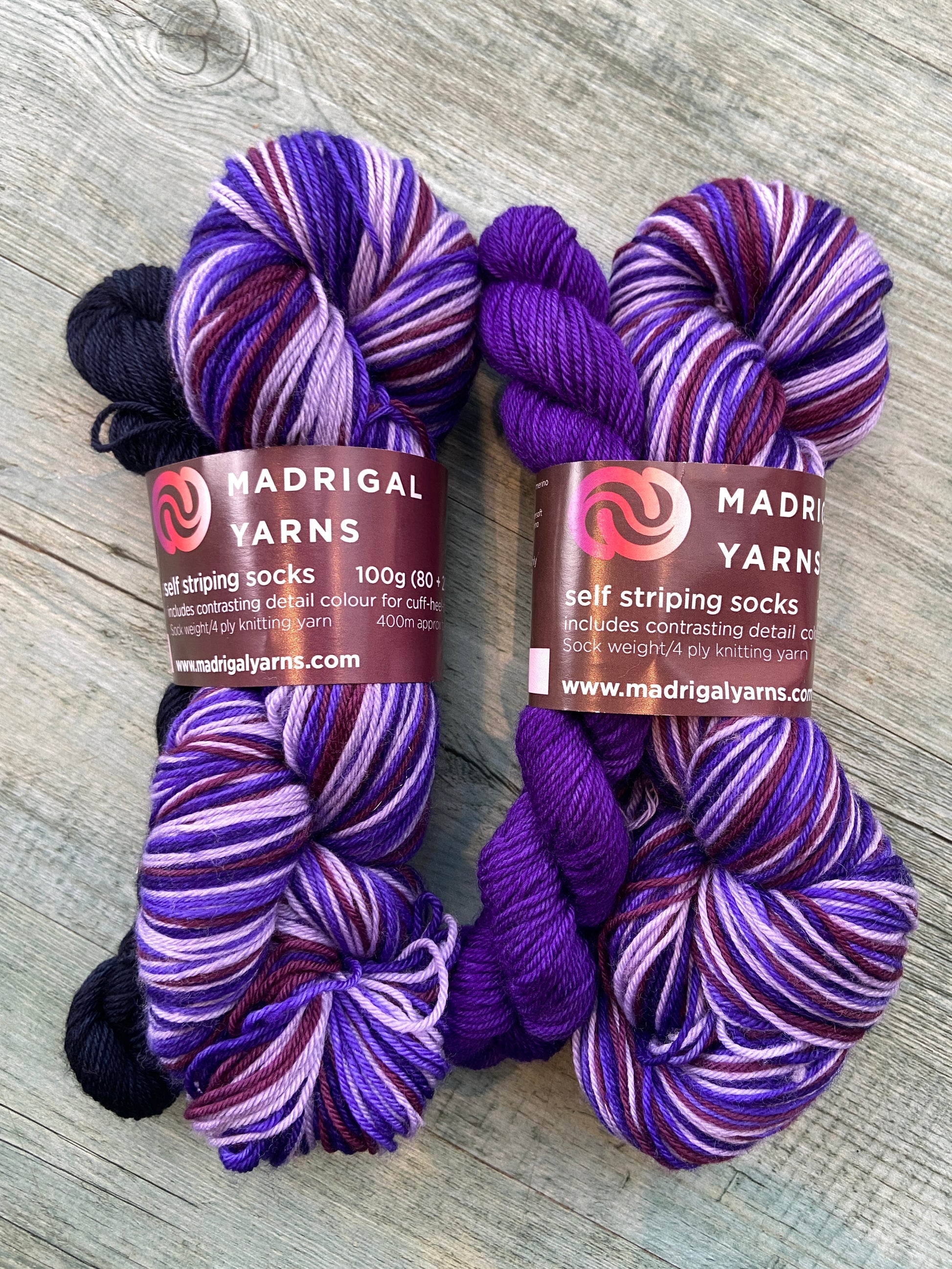 Please note that this kit is 80g of self striping sock yarn and 20g of white for the cuff heel toe details. Other variations of detail colour available soon.