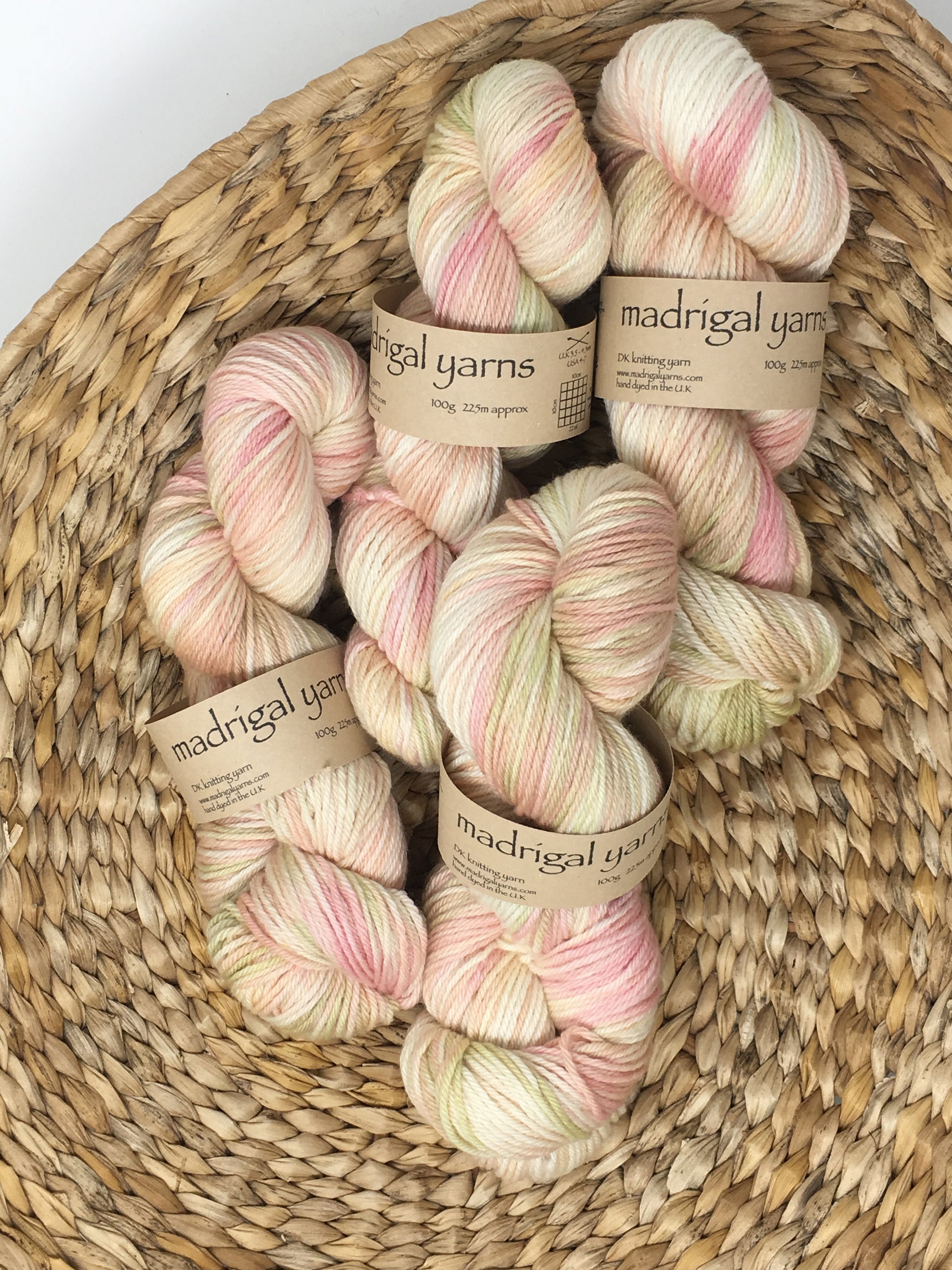Produced in super soft, New Merino, this yarn is delightful to work with and produces a beautiful mottled fabric with the predominant colour of soft pink.