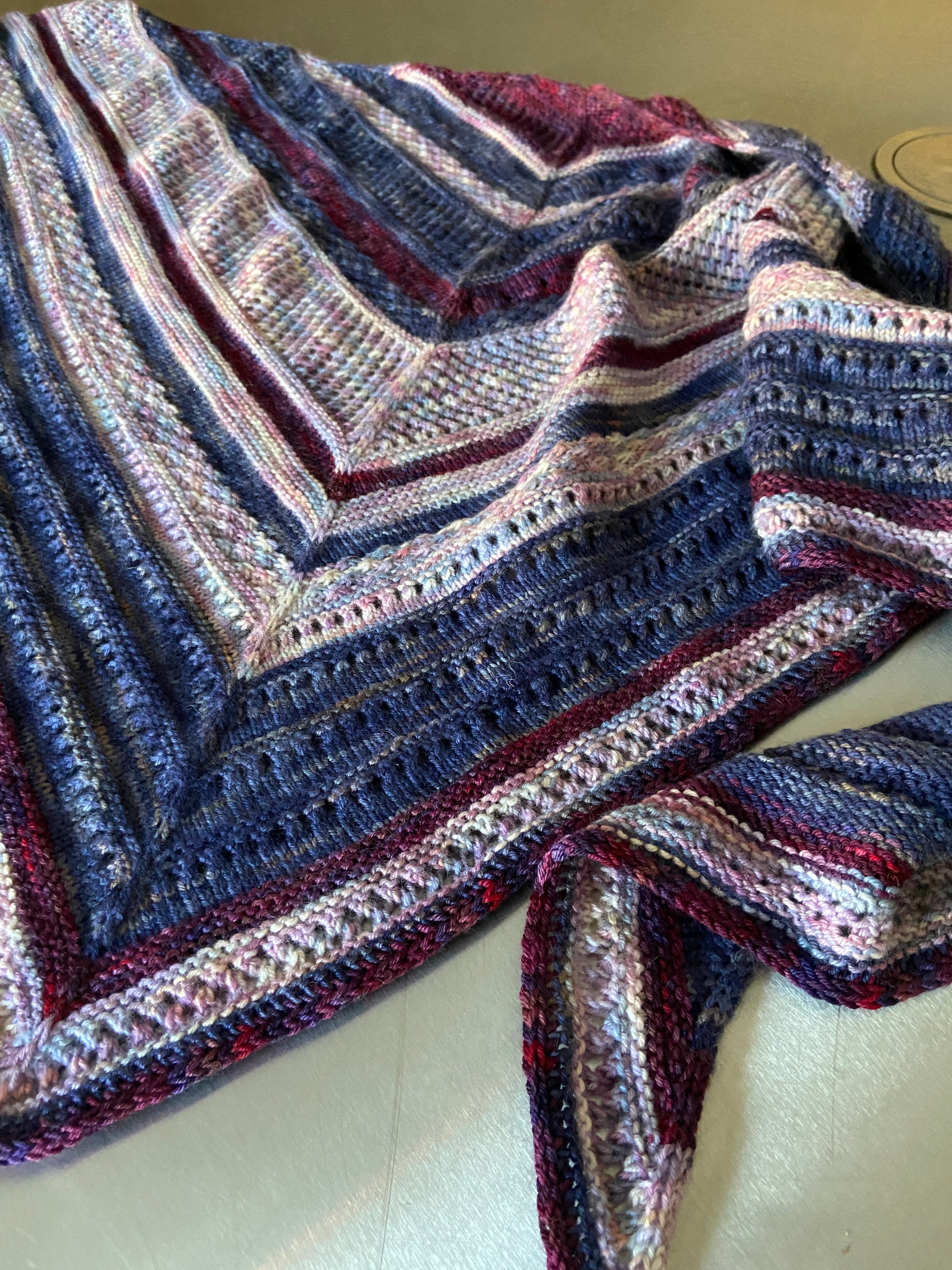 This is a large shawl pattern using a selection of easy garter and stocking stitches,